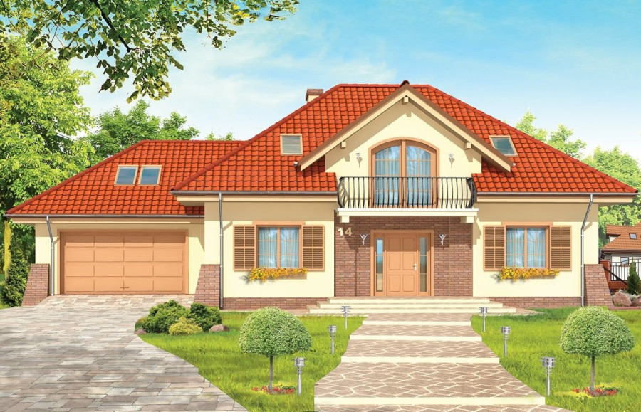 Projekt domu Benedykt 2 to parterowy budynek jednorodzinny, z poddaszem przekrytym wielospadowym dachem z szerokimi lukarnami. Architektura Benedykta 2 nawiązuje do tradycyjnego polskiego dworku, w nowoczesnym ujęciu. Balkoniki, łukowe okna, duże przeszklenia otwierające salon na ogród, wykusze i narożniki ścian ozdobione przyporami - wszystko to daje harmonijną, estetyczną bryłę, jednocześnie reprezentacyjną i przytulną. Wnętrze domu Benedykt 2 to obszerny salon z wydzielonym miejscem na jadalnię, półotwarta kuchnia, przestronny holl z wygodnymi schodami, dodatkowy pokój i zaplecze techniczne z garażem. Na poddaszu zaprojektowano sypialnie dzieci z garderobami i apartament rodziców z osobną łazienką. W projekcie Benedykt 2 istnieje możliwość zagospodarowania strychu nad garażem. Zapraszamy do zapoznania się z pełną ofertą pracowni MG Projekt: projekt domu Benedykt, projekt domu Benedykt 2, projekt domu Benedykt 3, projekt domu Benedykt 4, projekt domu Benedykt 5, projekt domu Benedykt Bliźniak.