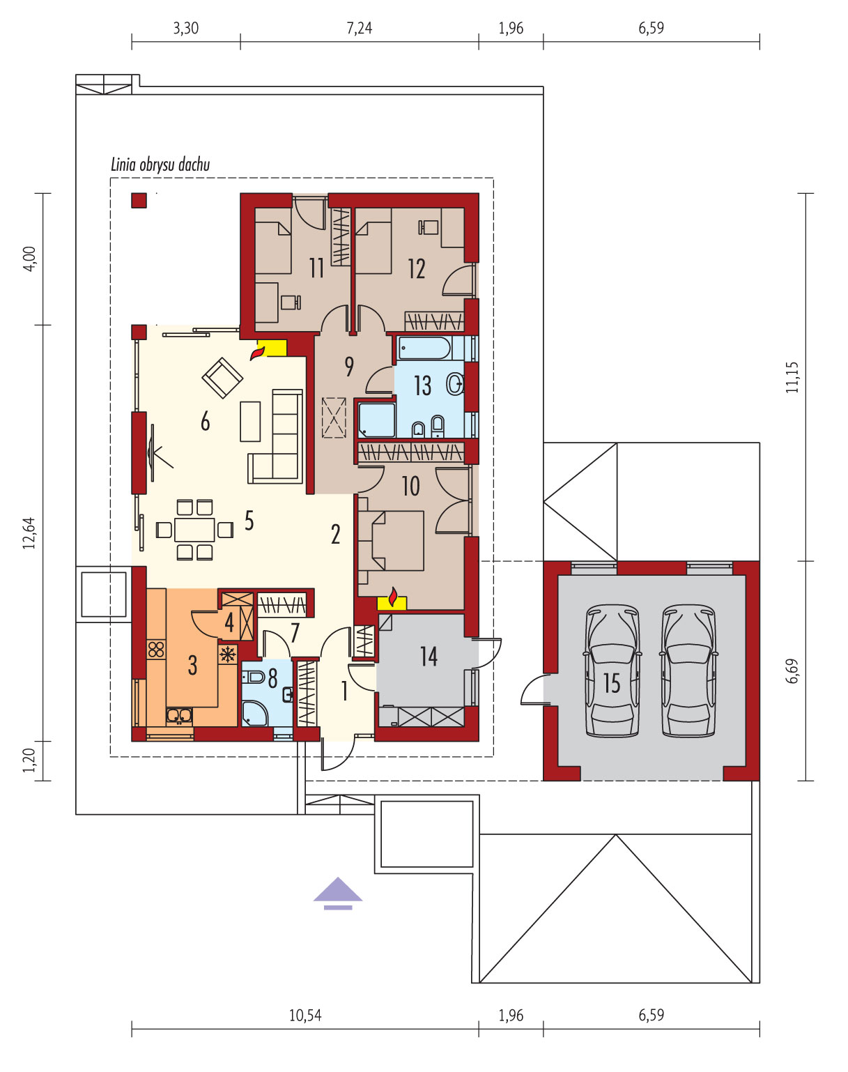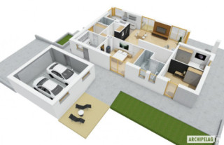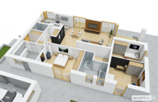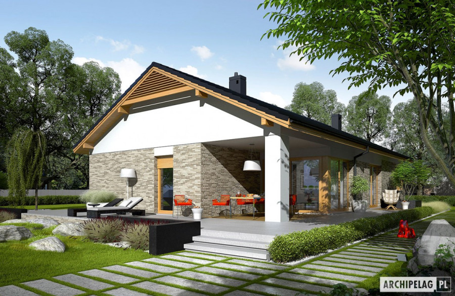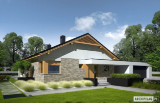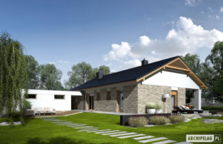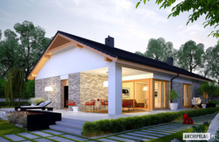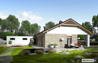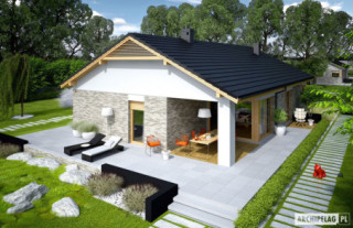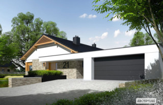 Charakterystyka: dom parterowy, niepodpiwniczony, z garażem dwustanowiskowymPrzeznaczenie: dom dla 3-4-osobowej rodziny Technologia i konstrukcja:Fundamenty: ławy, bloczki betonowe 24 cm, ocieplenie styropian 15 cmŚciany zewnętrzne: pustaki ceramiczne 24 cm, ocieplenie 20 cmŚciany wewnętrzne: murowane, pustaki ceramiczne ściany nośne 24 cm, ścianki działowe 11,5 cmPodłoga na gruncie: płyta betonowa, ocieplenie styropian 15 cmStrop i stropodach nad garażem: strop gęstożebrowy Teriva, ocieplenie styropian 30 cm; stropodach pełny: ocieplenie styropian 30 cmDach: konstrukcja drewniana, dachówka ceramiczna płaska Bergamo firmy Röben, więźba dachowa dostępna również w systemie prefabrykacji drewnianejRozwiązania instalacyjne:Ogrzewanie: kocioł gazowy, rozprowadzenie ciepła: grzejnikiWentylacja: grawitacyjna OZE: kolektory słoneczneWykończenie:Elewacje: tynk cienkowarstwowy mineralny w kolorze TO-PA001 z palety firmy Termo Organika, okładzina klinkierowa typu Calais firmy Röben oraz okładzina z płyty HPL z naturalną okleiną drewnianą firmy ProdemaStolarka: drewniana, PVC lub aluminiowa, rolety zewnętrzne w systemie CleverBox firmy BeClever, drzwi wejściowe i brama garażowa firmy HörmannOtoczenie: system tarasowy ProDeck - deska kompozytowa Terra w kolorze orzechWersje - zapytaj o dostępność:- Daniel - bez garażu i z garażem jednostanowiskowym- Daniel G1 (30 stopni) - z dachem o kącie nachylenia 30°, garaż jednostanowiskowy- Daniel II - podobny układ funkcjonalny, dom parterowy- Daniel III - podobny układ funkcjonalny, wysoki salon doświetlony dodatkowo oknami dachowymi- Daniel IV - dom parterowy z antresolą i dodatkowymi pomieszczeniami do adaptacji, prefabrykowana więźba dachowa, dach o kącie nachylenia 35°- Daniel V ENERGO PLUS - dom z poddaszem użytkowym, prefabrykowana więźba dachowa, dach o kącie nachylenia 42°, instalacje energooszczędne: pompa ciepła, ogrzewanie podłogowe, wentylacja mechaniczna, system solarny- każda wersja z inną propozycją wykończenia elewacji- różne wersje garaży do każdego domu: bez garażu, z garażem jedno- i dwustanowiskowym- odbicie lustrzane do każdej wersji Istnieje techniczna możliwość:- podpiwniczenia budynku- wykonania budynku w technologii szkieletowej - zmiany kąta nachylenia do 30° i adaptacji poddasza na strych