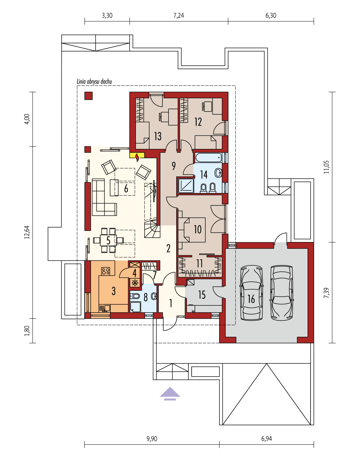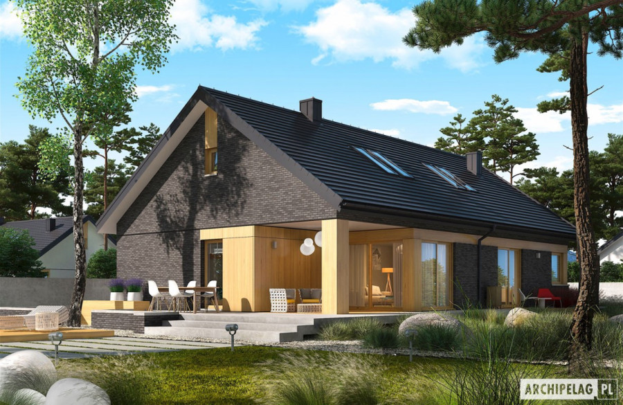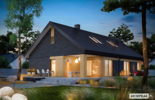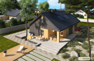 Więźba dachowa w systemie prefabrykacji drewnianej w systemie płytki kolczastej MITEK.Charakterystyka: Dom parterowy z poddaszem do późniejszej adaptacji, niepodpiwniczony, z garażem dwustanowiskowymPrzeznaczenie: Dom dla 3-4-osobowej rodziny Technologia i konstrukcja:Ściany zewnętrzne: murowane, dwuwarstwowe, pustaki ceramiczne 24 cm, ocieplenie styropian Termo Organika 20 cmŚciany wewnętrzne: nośne i działowe murowane, pustaki ceramiczne 24 cm i 12 cmStrop i stropodach nad garażem: strop gęstożebrowy Teriva i pas dolny wiązara stanowi konstrukcję, nad garażem stropodach pełny Dach: więźba dachowa w systemie prefabrykacji drewnianej, ocieplenie wełna mineralna ISOVER 30 cm, dachówka ceramiczna płaska typu Bergamo firmy Röben Rozwiązania instalacyjne: Ogrzewanie: kocioł gazowy kondensacyjny firmy Viessmann, rozprowadzenie ciepła: grzejniki firmy Purmo Wentylacja: grawitacyjna OZE: kolektory słoneczne firmy Viessmann Dodatkowo: stacja uzdatniania wody firmy ViessmannWykończenie:Elewacje: tynk cienkowarstwowy mineralny w kolorze TO-PA001 z palety firmy Termo Organika, okładzina drewniana, płytki ceramiczne elewacyjne firmy RöbenStolarka: drewniana, PVC lub aluminiowa, drzwi tarasowe podnoszono-przesuwne typu HS aluminiowo-drewniane Innoview firmy Fakro, rolety zewnętrzne w systemie CleverBox firmy BeClever, drzwi wejściowe i brama garażowa firmy HörmannOkna połaciowe: rozwiązania technologiczne firmy FakroOtoczenie: płyty tarasowe firmy Libet, system tarasowy ProDeck - deska kompozytowa Terra w kolorze orzech Wersje - zapytaj o dostępność:- Daniel – dom parterowy, podobny układ funkcjonalny, tradycyjna więźba dachowa- Daniel G1 (30 stopni) - dach o kącie nachylenia 30°, tradycyjna więźba dachowa, garaż jednostanowiskowy - Daniel II – dom parterowy, podobny układ funkcjonalny, tradycyjna więźba dachowa - Daniel III - dom parterowy, wysoki salon z dodatkowym doświetleniem oknami dachowymi, tradycyjna więźba dachowa - Daniel IV - bez garażu lub z garażem jednostanowiskowym - Daniel V ENERGO PLUS - dom z poddaszem użytkowym, prefabrykowane wiązary dachowe, dach o kącie nachylenia 42°, instalacje energooszczędne: pompa ciepła, ogrzewanie podłogowe, wentylacja mechaniczna, system solarny - każda wersja z inną propozycją wykończenia elewacji - różne wersje garaży do każdego domu: bez garażu, z garażem jedno- i dwustanowiskowym - odbicie lustrzane do każdej wersjiIstnieje techniczna możliwość:- podpiwniczenia budynku- wykonania budynku w technologii szkieletowej