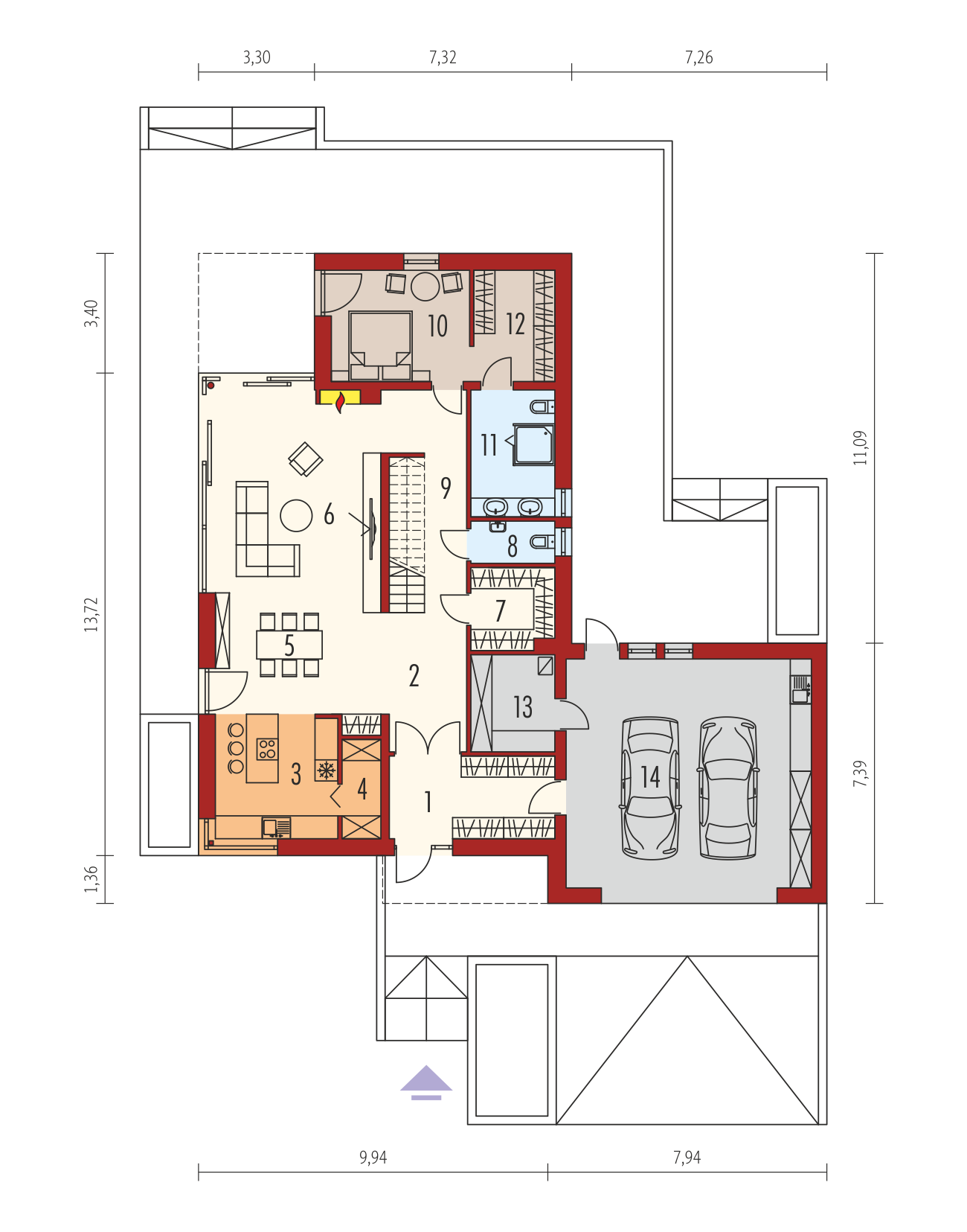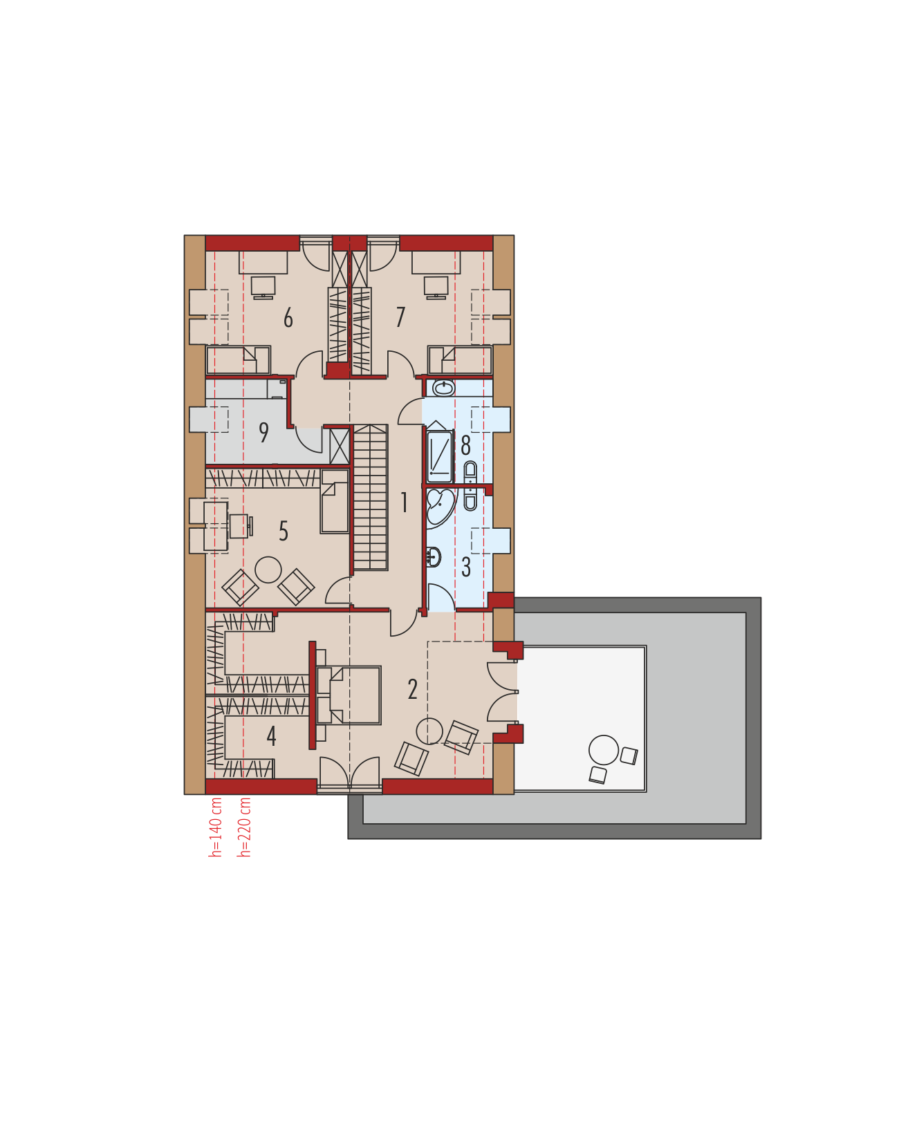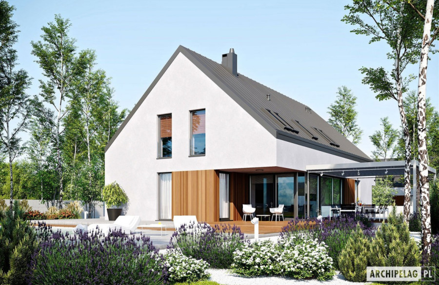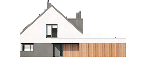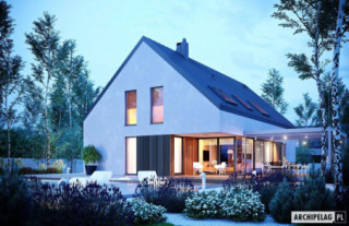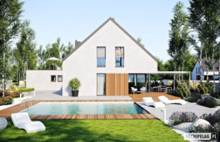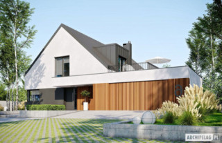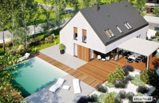 Charakterystyka: Dom parterowy z poddaszem użytkowym, niepodpiwniczony, z garażem dwustanowiskowymPrzeznaczenie: Dom dla 4-7-osobowej rodziny Technologia i konstrukcja:Ściany zewnętrzne: murowane, dwuwarstwowe, beton komórkowy firmy H+H, ocieplenie styropian Termo Organika 20 cmŚciany wewnętrzne: nośne i działowe murowane, beton komórkowy firmy H+H 24 cm i 12 cmStrop i stropodach nad garażem: międzypiętrowy gęstożebrowy Teriva, nad garażem stropodach pełny z tarasem użytkowym Dach: konstrukcja drewniana, ocieplenie wełna mineralna Isover 30 cm, blacha dachowa na rąbek stojącyInne: schody wewnętrzne drewniane Rozwiązania instalacyjne:Ogrzewanie: kocioł gazowy kondensacyjny firmy Viessmann, rozprowadzenie ciepła: grzejniki firmy PurmoWentylacja: grawitacyjna Wykończenie:Elewacje: tynk cienkowarstwowy mineralny w kolorze białym TO-PA001 i ciemnoszarym TO-GY011 z palety firmy Termo Organika, okładzina drewnianaStolarka: aluminiowa firmy Reynaers Aluminium lub drewniano-aluminiowa INNOVIEW firmy Fakro, drzwi wejściowe i brama garażowa firmy HörmannOkna połaciowe: rozwiązania technologiczne i wyłaz dachowy firmy FAKROOtoczenie: kostka betonowa i płyty tarasowe firmy Libet, system tarasowy ProDeck - deska kompozytowa Terra w kolorze orzech Wersje - zapytaj o dostępność:- Daniel VI – wersja bez garażu lub z garażem jednostanowiskowym - Daniel – dom parterowy, dach o kącie nachylenia 26° - Daniel G1 (30 stopni) – dom parterowy, dach o kącie nachylenia 30°, garaż jednostanowiskowy - Daniel II – dom parterowy, dach o kącie nachylenia 26° - Daniel III – dom parterowy, wysoki salon doświetlony dodatkowo oknami dachowymi, dach o kącie nachylenia 26° - Daniel IV - dom parterowy z antresolą i dodatkowymi pomieszczeniami do adaptacji, prefabrykowana więźba dachowa, dach o kącie nachylenia 35°- Daniel V ENERGO PLUS - dom z poddaszem użytkowym, prefabrykowane wiązary dachowe, dach o kącie nachylenia 42°, instalacje energooszczędne: pompa ciepła, ogrzewanie podłogowe, wentylacja mechaniczna, system solarny - każda wersja z inną propozycją wykończenia elewacji - różne wersje garaży do każdego domu: bez garażu, z garażem jedno- i dwustanowiskowym - odbicie lustrzane do każdej wersji Istnieje techniczna możliwość:- podpiwniczenia budynku- zbliźniaczenia- wykonania budynku w technologii szkieletowejWarianty działek dla wersji domu z garażem jednostanowiskowym i bez garażu: