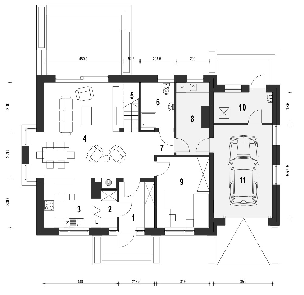 Projekt Daria to dom jednorodzinny wolnostojący z wbudowanym garażem, przeznaczony dla 4 osobowej rodziny.fundamenty: BETONOWE ściany zewnętrzne: POROTHERM+STYROPIAN TERMO ORGANIKA ściany wewnętrzne: POROTHERM, GK rodzaj stropu: TERIVA I elewacje: TYNK STRUKTURALNY, OKŁ.KLINKIEROWA pokrycie dachu: DACHÓWKA CEM. lub CER.