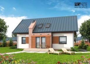 DAVOS - dom jednorodzinny z poddaszem użytkowym oraz garażem Ten dom jednorodzinny z poddaszem użytkowym to kompleksowa propozycja dla każdego Inwestora. Jest połączeniem tradycji z nowoczesnością. Proponowany wygląd elewacji to sugestia, za którą warto podążyć. Gustowne, symetryczne odeskowanie i odpowiadające mu biegunowo wejścia elewacji frontowej (weranda) i tylnej (taras) to jedne z wielu nowoczesnych i zestawionych ze smakiem elementów architektonicznych. Dwuspadowy dach jest gwarancją funkcjonalności i bezpieczeństwa. Z nim niestraszne będą wszystkie kaprysy pogody. Garaż wpisany w bryłę DAVOS to udogodnienie, na które zasługujesz i, na które Cię stać. Zmieścisz w nim samochód, za jego ścianą przewidziano miejsce na kotłownię. Wnętrza epatują spokojem i zrównoważeniem architektonicznym, pozytywnie oddziałując na mieszkańców Miluzy. Wiatrołap, komunikacja, sąsiadująca z nimi łazienka (za nią znajdują się schody), przestronny salon łączony z jadalnią i otwartą kuchnią oraz znajdująca się na wschodniej ścianie kotłownia/pralnia to najważniejsze pomieszczenia domu. Z salonu można wyjść na taras, będący miejscem niejednej uroczystej kolacji i wesołej imprezy w gronie rodziny i znajomych. Na piętrze znajdują się 4 pokoje, 3 mogące pełnić funkcje sypialni, 1 garderoba oraz duża łazienka usytuowana tuż za schodami, z pewnością zadowoli wszystkich domowników. Balkon znajdujący się na pierwszym piętrze pozwoli jeszcze bardziej cieszyć się swoim domem. Projekt składa się z części architektonicznej, konstrukcyjnej, wewnętrznych instalacji wod.-kan, c. o. i elektrycznej. W projekcie załączone są podstawowe zestawienie stali, drewna i stolarki okienno-drzwiowej. Do projektu dołączamy bezpłatną zgodę na wprowadzenie zmian, oświadczenie projektantów o wykonaniu projektu zgodnie z obowiązującymi normami i przepisami oraz kserokopie uprawnień projektantów wraz z aktualnym wpisem do izby. W przypadku zamówienia projektu w technologii lekkiej, drewnianej konstrukcji szkieletowej, powierzchnia użytkowa budynku jest o około 7% większa.