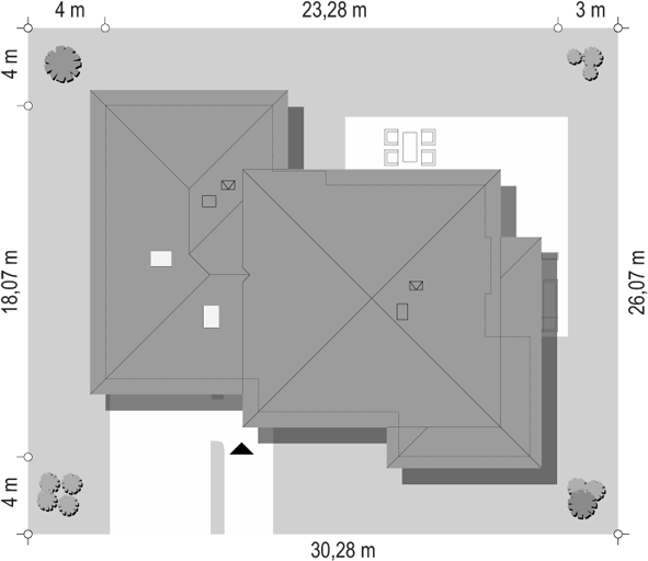 Mały dom z poddaszem użytkowym, bez garażu. Na parterze zaplanowano strefę dzienną - salon, jadalnię, kuchnię ze spiżarnią, toaletę oraz kotłownię. Na poddaszu znajdują się trzy sypialnie oraz wspólna łazienka.