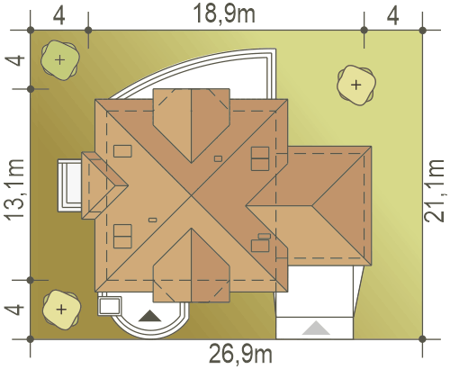 Dom parterowy. Duży salon z kominkiem, wyjściem na taras i otwarciem na kuchnię. Trzy pokoje, łazienka, kotłownia, wiatrołap i komunikacja. Poddasze nieużytkowe (możliwość późniejszego wykorzystania dla celów mieszkalnych.