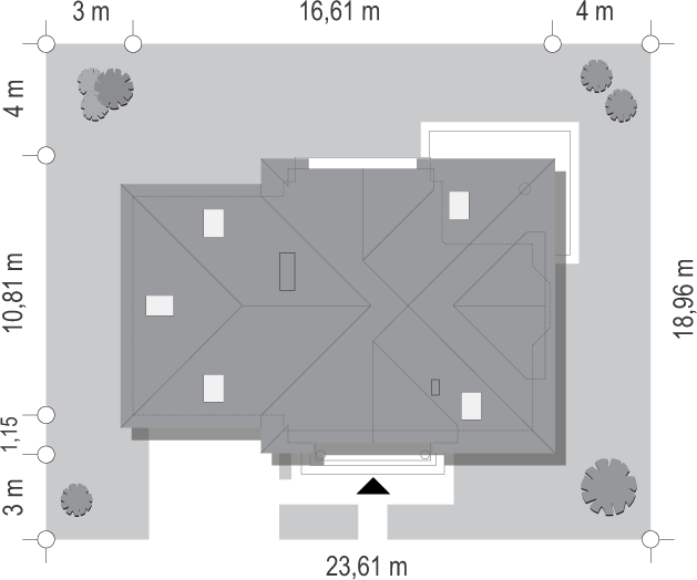 Denar to oryginalny projekt domu, którego wygląd zachwyca od pierwszego spojrzenia. Jest to Projekt niewielkiego domu łączący odważną stylistykę z tradycyjnymi proporcjami. Układ funkcjonalny to sprawdzony podział na strefę dzienną i nocną. Na parterze zaprojektowano strefę dzienną z przestronnym salonem, jadalnią oraz kuchnią z przylegającą do niej spiżarnią. Duże przeszklenia doświetlają wnętrze każdego pomieszczenia i atrakcyjnie otwierają strefę dzienną salonu na zadaszony taras wypoczynkowy. Taras dostępny jest również z dodatkowego pokoju którego funkcją może być pokój gościnny lub biuro. Poddasze stanowi strefę nocną z trzema sypialniami, łazienką i pralnią. Główna sypialna gospodarzy posiada prywatną łazienkę.Ściany: 2-warstwowe - bloczek silikatowy + styropian, Stropy: żelbetowe, wylewane, Dach: blacha na rąbek stojący Classic Ruukki, kąt nachylenia 42°