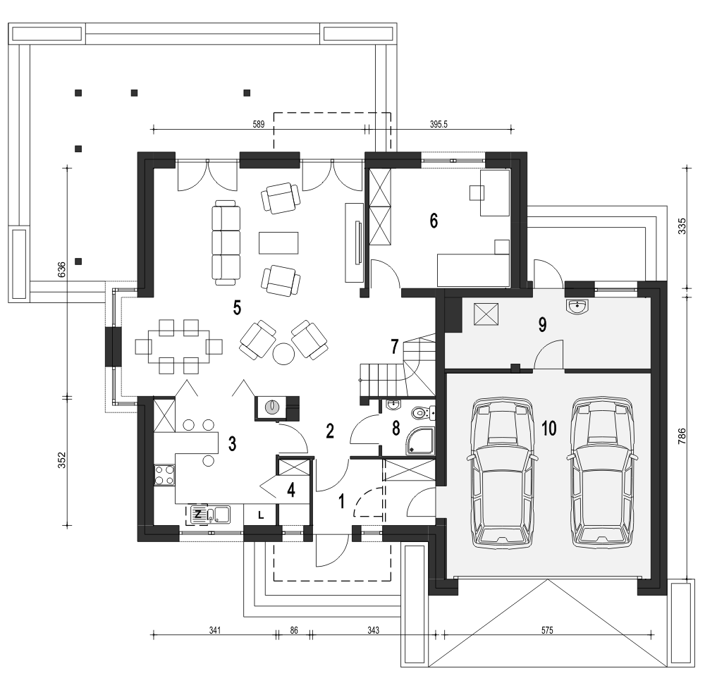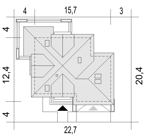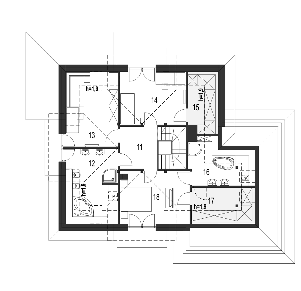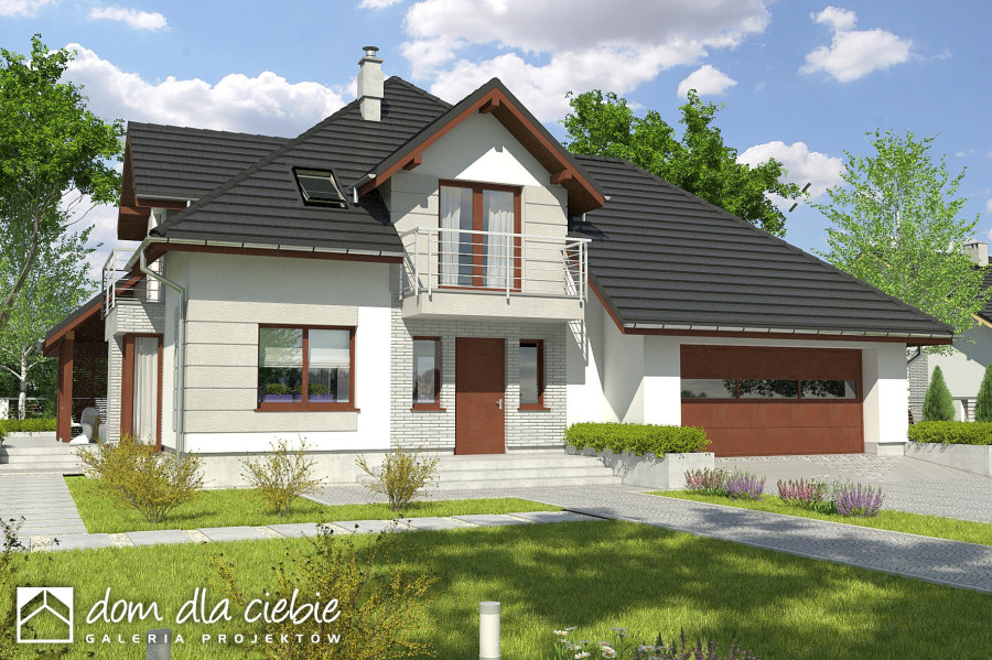 Projekt Diana to dom jednorodzinny wolnostojący z wbudowanym garażem, przeznaczony dla 4 osobowej rodziny. Dom ma tradycyjną architekturę, z lukarnami, balkonami i wielospadowym dachem bez kalenicy. Elewacjom nadano jednak współczesny charakter. Zaprojektowano tutaj duży salon i sporą kotłownię na paliwo stałe. Każda sypialnia na poddaszu posiada balkon, a sypialnia główna posiada prywatną garderobę i łazienkę.