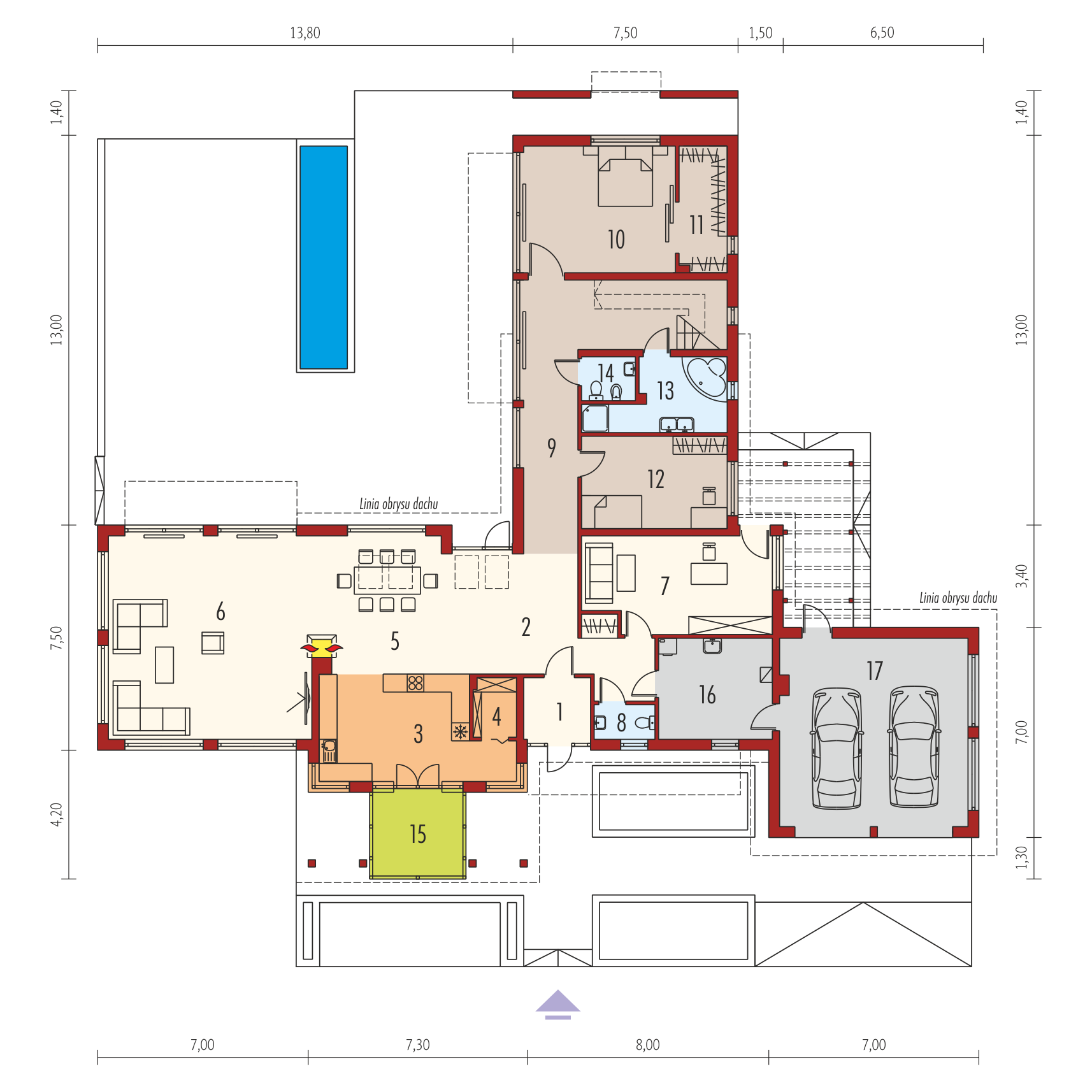 Charakterystyka: Dom piętrowy, niepodpiwniczony, z garażem dwustanowiskowym Przeznaczenie: Dom dla 4-5 osobowej rodzinyTechnologia i konstrukcja: Ściany zewnętrzne: murowane Strop: gęstożebrowy Dach: konstrukcja drewniana, dachówka ceramiczna. Więźba dachowa dostępna również w systemie prefabrykacji drewnianej. Inne: schody wewnętrzne drewnianeRozwiązania instalacyjne: Ogrzewanie: kocioł gazowy, rozprowadzenie ciepła: grzejniki Wentylacja: grawitacyjna Wykończenie: Elewacje: tynk strukturalny i okładzina drewniana Stolarka: aluminiowa Otoczenie: System tarasowy ProDeck - deska kompozytowa Terra w kolorze kasztan.Wersje - zapytaj o dostępność: - Dionizy G3 – większa powierzchnia, inna aranżacja pomieszczeń, garaż trzystanowiskowy - Odbicia lustrzane do wszystkich wersji