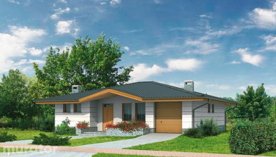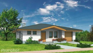 <b>Ustawny dom</b> o regularnej, symetrycznej bryle przykrytej kopertowym dachem, doskonale wtopiony w otaczającą zieleń. Nowoczesny charakter podkreślają detale i kolorystyka elewacji: różne odcienia bieli i szarości, boniowanie, okna o nietypowych podziałach. Dzięki prostej konstrukcji jego budowa nie będzie kłopotliwa. Chociaż wszystkie pomieszczenia znajdują się na jednej kondygnacji, we wnętrzu widać wyraźny podział na część dzienną oraz nocną. Sypialnie - usytuowane w dwóch bocznych skrzydłach - są oddzielone korytarzami od pokoju dziennego. W dużej, umiejętnie wydzielonej kuchni, z oknami skierowanymi na podwórko i podjazd można bez problemu na co dzień spożywać posiłki. <b>Salon</b> to wspaniałe, integrujące całą rodzinę miejsce. Drzwi balkonowe zapraszają d