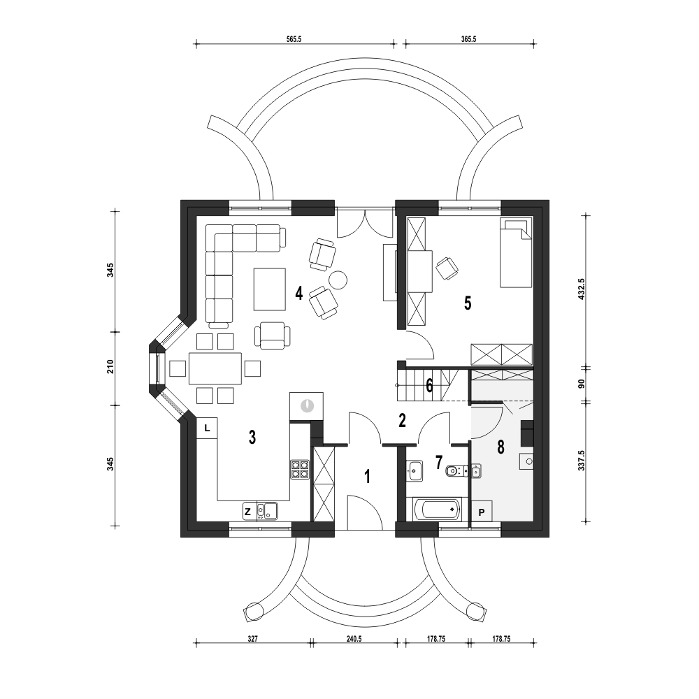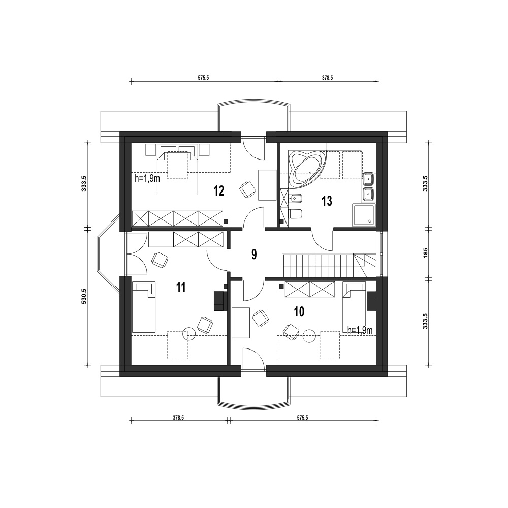 Dom Dla Ciebie 1 w3 bez garażu przeznaczony jest dla 4ro osobowej rodziny , zaprojektowany jest z zachowaniem podziału na dwie strefy: dzienną na parterze i nocną na poddaszu. Na parterze mamy zaprojektowany wiatrołap, hol, kuchnię, salon z jadalnią i kominkiem oraz pokój usytuowanego od strony ogrodowej. Przy schodach mamy zaprojektowaną łazienkę z wanną oraz kotłownię z pralką. Poddasze obejmuje trzy ustawne i dobrze doświetlone pokoje, każdy pokój z własnym balkonem. Na poddaszu zaprojektowano ogólnie dostępną łazienkę z narożną wanną i prysznicem. Poddasze zaprojektowane jest pod dwuspadowym dachem opartym na tradycyjnej więźbie i ściance kolankowej. Projekt Dom Dla Ciebie 1 w3, to idealna propozycją domu dla osób poszukujących tradycyjnego domu o stylowej architekturze i przemyślanej funkcji.