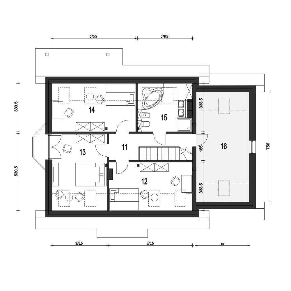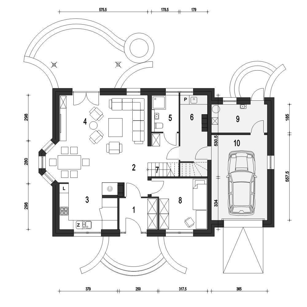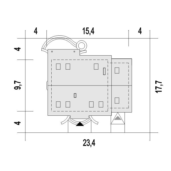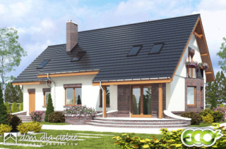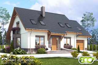 Dom Dla Ciebie 2 w wariancie z przybudowanym garażem, to projekt domu dwukondygnacyjnego - z poddaszem użytkowym. Ten atrakcyjny dom zaprojektowany jest dla 4ro osobowej rodziny z zachowaniem podziału na dwie strefy: dzienną na parterze i nocną na poddaszu. Na parterze tego domu zaprojektowany mamy wiatrołap w z miejscem na wnękowe szafy, następnie hol z którego dostaniemy się do kuchni ze spiżarnią, do salonu z jadalnią i kominkiem oraz do pokoju usytuowanego od frontu budynku - pokój ten może być wykorzystywany jako gabinet, np na etapie adaptacji. Przy schodach mamy przewidzianą niewielką ale wygodną łazienkę z prysznicem, a także przejściową pralnię, z której dostaniemy się do garażu oraz kotłowni. Poddasze tego domu obejmuje trzy ustawne i wygodne pokoje, a przy schodach zaprojektowano ogólnie dostępną łazienkę z narożną wanną i prysznicem. Nad garażem mamy do dyspozycji strych który można wykorzystać, np.: na etapie adaptacji jako dodatkowe pomieszczenie: pokój, garderobę lub pomieszczenie rekreacyjne. Poddasze zaprojektowane jest pod dwuspadowym dachem na tradycyjnej więźbie ze śianką kolankową. Projekt Dom Dla Ciebie 2, to idealna propozycją domu dla osób poszukujących ekonomicznego w budowie i energooszczędnego domu o stylowej, współczesnej architekturze i przemyślanej funkcji.fundamenty: BETONOWE ściany zewnętrzne: POROTHERM+STYROPIAN TERMO ORGANIKA rodzaj stropu: TERIVA I elewacje: TYNK STRUKTURALNY, OKŁADZINA KLINKIEROWA pokrycie dachu: DACHÓWKA CEMENTOWA, CERAMICZNA lub BLACHA DACHÓWKO PODOBNA