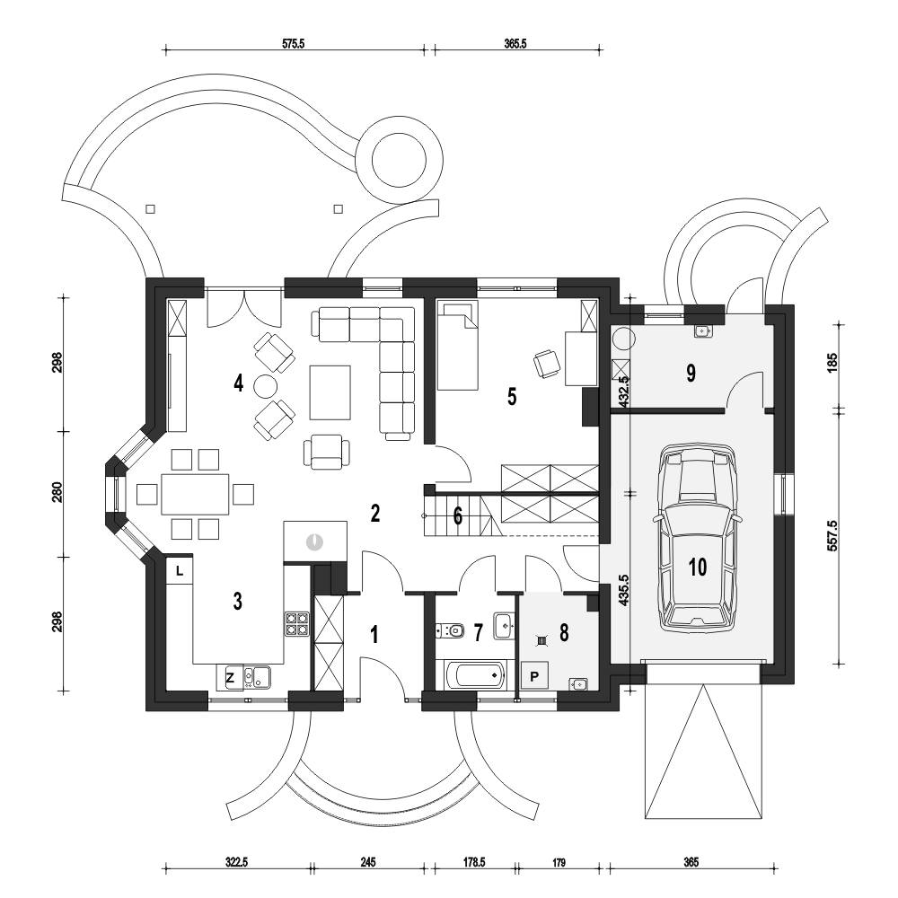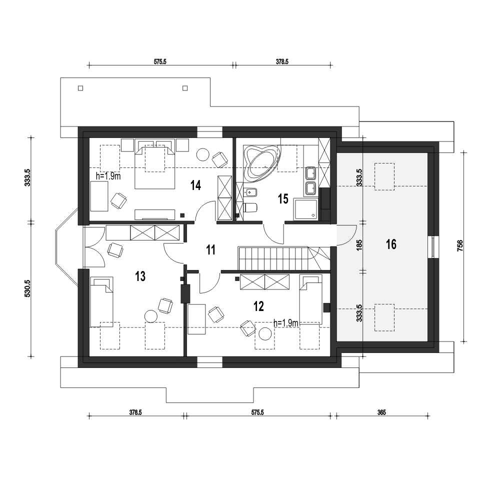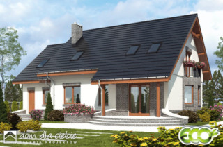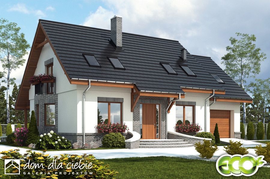Dom Dla Ciebie 2 w2 (wersja 2) w wariancie z przybudowanym garażem, to projekt domu dwukondygnacyjnego - z poddaszem użytkowym. Ten atrakcyjny dom zaprojektowany jest dla 4ro osobowej rodziny z zachowaniem podziału na dwie strefy: dzienną na parterze i nocną na poddaszu. W stosunku do poprzedniej wersji projektu mamy tu przewidziane zmiany funkcji w obrębie parteru. Projekt przewiduje większa kuchnię, większy salon z jadalnią. Ponadto zmieniona została lokalizacja pomieszczeń łazienki - w tej wersji zlokalizowane są od frontu oraz pokoju - w tej wersji pokój zlokalizowany został od strony ogrodu. Poza tymi zmianami reszta pomieszczeń jest podobny, tzn wiatrołap i schody pozostały w zasadzie bez zmian, a hol główny jest obszerniejszy i możemy dostać się nim bezpośrednio do garażu. Poddasze tego domu obejmuje trzy ustawne i wygodne pokoje sypialne i ogólnie dostępną łazienkę z narożną wanną i prysznicem. Nad garażem mamy do dyspozycji strych który bardzo łatwo można wykorzystać, np.: na etapie adaptacji jako dodatkowe pomieszczenie: pokój, garderobę lub pomieszczenie rekreacyjne. Poddasze zaprojektowane jest pod dwuspadowym dachem na tradycyjnej więźbie ze ścianką kolankową. Projekt Dom Dla Ciebie 2 w2, to idealna propozycją domu dla osób poszukujących ekonomicznego w budowie i energooszczędnego domu o stylowej, współczesnej architekturze i przemyślanej funkcji.fundamenty: BETONOWE ściany zewnętrzne: POROTHERM+STYROPIAN TERMO ORGANIKA rodzaj stropu: TERIVA I elewacje: TYNK STRUKTURALNY, OKŁADZINA KLINKIEROWA pokrycie dachu: DACHÓWKA CEMENTOWA, CERAMICZNA lub BLACHA DACHÓWKO PODOBNA