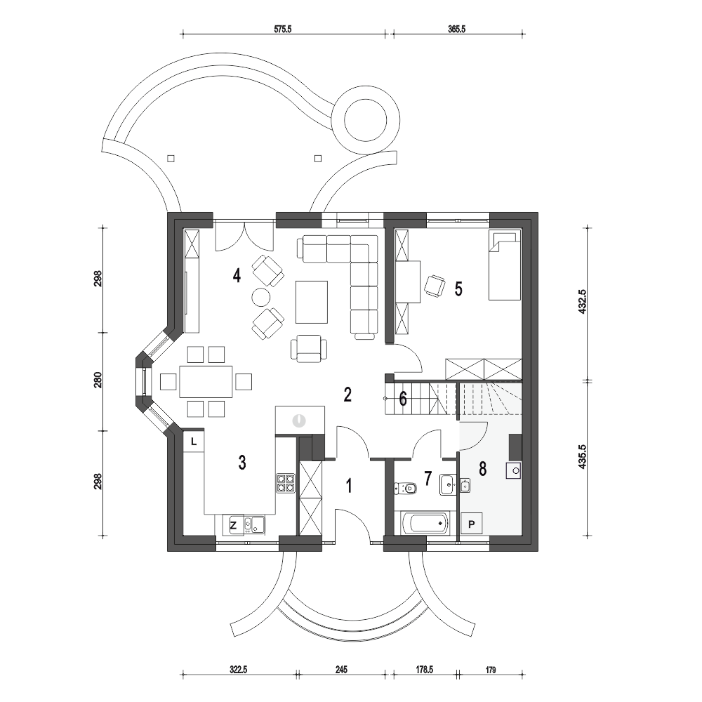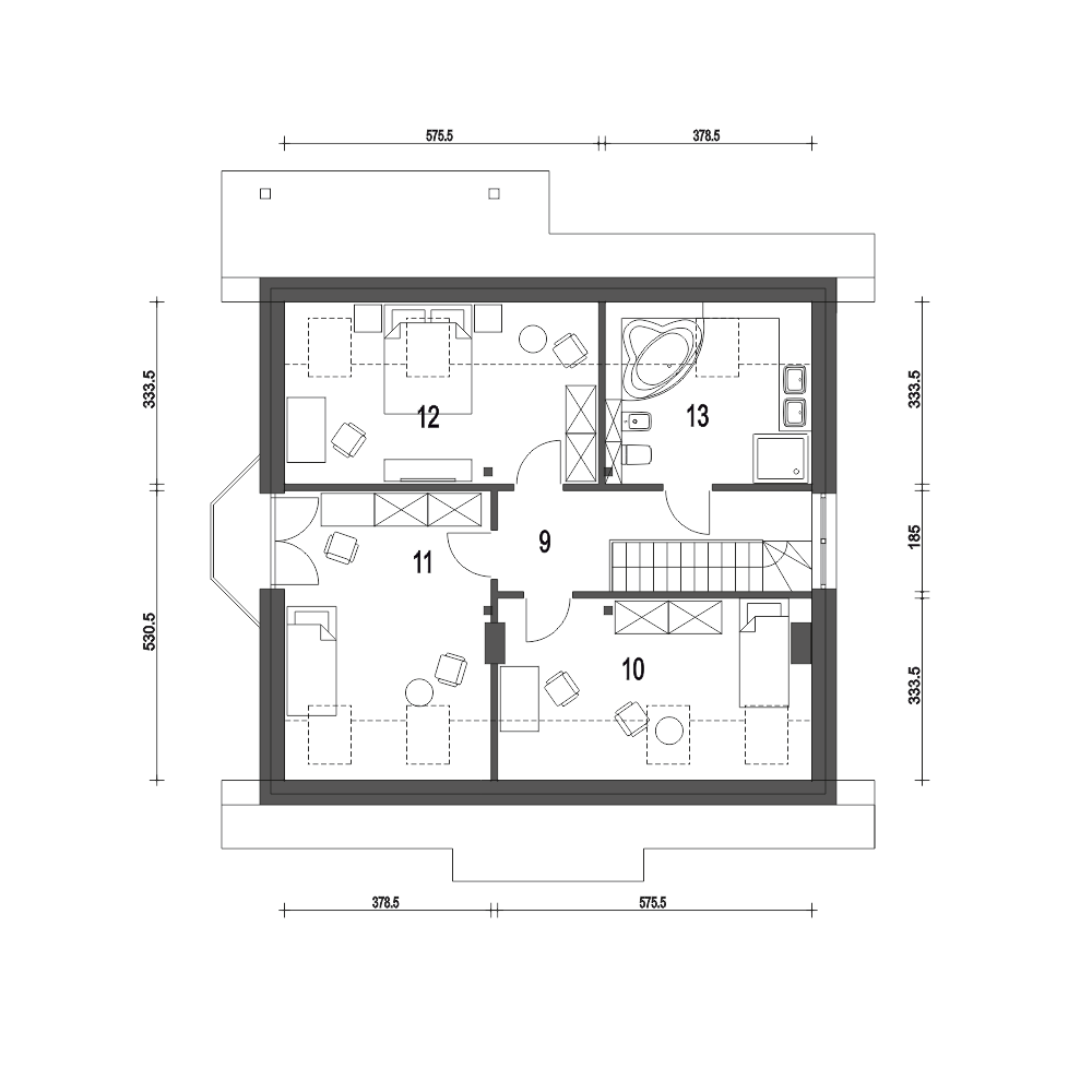 Dom Dla Ciebie 2 w2 (wersja 2) w wariancie (B) bez garażu, to projekt atrakcyjnego domu dwukondygnacyjnego - z poddaszem użytkowym. Dom zaprojektowany jest dla 4ro osobowej rodziny z zachowaniem podziału na dwie strefy: dzienną na parterze i nocną na poddaszu. W stosunku do poprzedniej wersji projektu mamy tu przewidziane zmiany funkcji w obrębie parteru. Projekt przewiduje większa kuchnię, większy salon z jadalnią z którego możemy wyjść na zadaszony taras ogrodowy. Ponadto zmieniona została lokalizacja pomieszczeń łazienki i kotłowni - w tej wersji zlokalizowane są od frontu a pokoju zaprojektowany został od strony ogrodu. Poza tymi zmianami reszta pomieszczeń jest podobna, w tym wiatrołap i schody pozostały w zasadzie bez zmian, a hol główny jest obszerniejszy i możemy dostać się nim bezpośrednio do garażu. Poddasze domu obejmuje trzy ustawne i wygodne pokoje sypialne i ogólnie dostępną łazienkę z narożną wanną i prysznicem. Poddasze zaprojektowane jest pod dwuspadowym dachem na tradycyjnej więźbie ze ścianką kolankową. Projekt Dom Dla Ciebie 2 w2 bez garażu, to idealna propozycją domu dla osób poszukujących ekonomicznego w budowie i energooszczędnego domu o stylowej, współczesnej architekturze i przemyślanej funkcji.