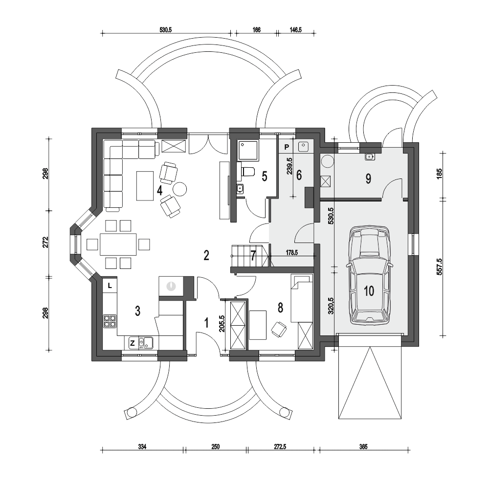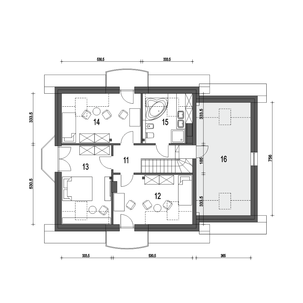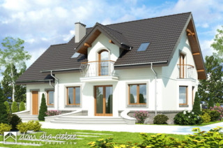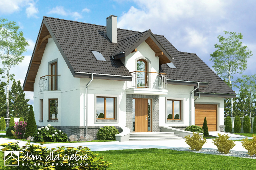 Dom Dla Ciebie 3 w wariancie A2 z to mniejsza wersja projektu Dom Dla Ciebie 1. W projekcie przewidziano podniesienie ścianki kolankowej do wysokości 1,17m w stosunku do wariantu A, gdzie ścianka kolankowa ma wysokość około 0,9m. Ten atrakcyjny dom zaprojektowany na rzucie kwadratu i ma ok 126 m2 i przeznaczony jest dla 4ro osobowej rodziny. Dom Dla Ciebie 3, zaprojektowany jest z zachowaniem podziału na dwie strefy: dzienną na parterze i nocną na poddaszu. Na parterze mamy zaprojektowany wiatrołap z wnękowymi szafami, następnie mamy wygodny hol z którego dostaniemy się do kuchni ze spiżarnią, do salonu z jadalnią i kominkiem. Na parterze mamy jeszcze do dyspozycji pokój usytuowany od frontu, który może być wykorzystywany np jako gabinet. Przy schodach mamy przewidzianą łazienkę z prysznicem oraz przejściową pralnię z której dostaniemy się do garażu i kotłowni. Poddasze obejmuje trzy ustawne, doświetlone pokoje - każdy z własnym balkonem. Przy schodach zaprojektowano ogólnie dostępną łazienkę z narożną wanną i prysznicem. Nad garażem mamy do dyspozycji strych do którego dostaniemy się ze spocznika schodów prowadzących na poddasze. Strych z łatwością można wykorzystać na etapie adaptacji jako dodatkowe pomieszczenie np.: pokój, garderobę lub pomieszczenie rekreacyjne. Poddasze zaprojektowane jest pod dwuspadowym dachem opartym na tradycyjnej więźbie i ściance kolankowej. Projekt Dom Dla Ciebie 3, to idealna propozycją domu dla osób poszukujących tradycyjnego domu o stylowej architekturze i przemyślanej funkcji. Projekt Dom Dla Ciebie 3 zaprojektowany jest w standardzie projektów energooszczędnych.