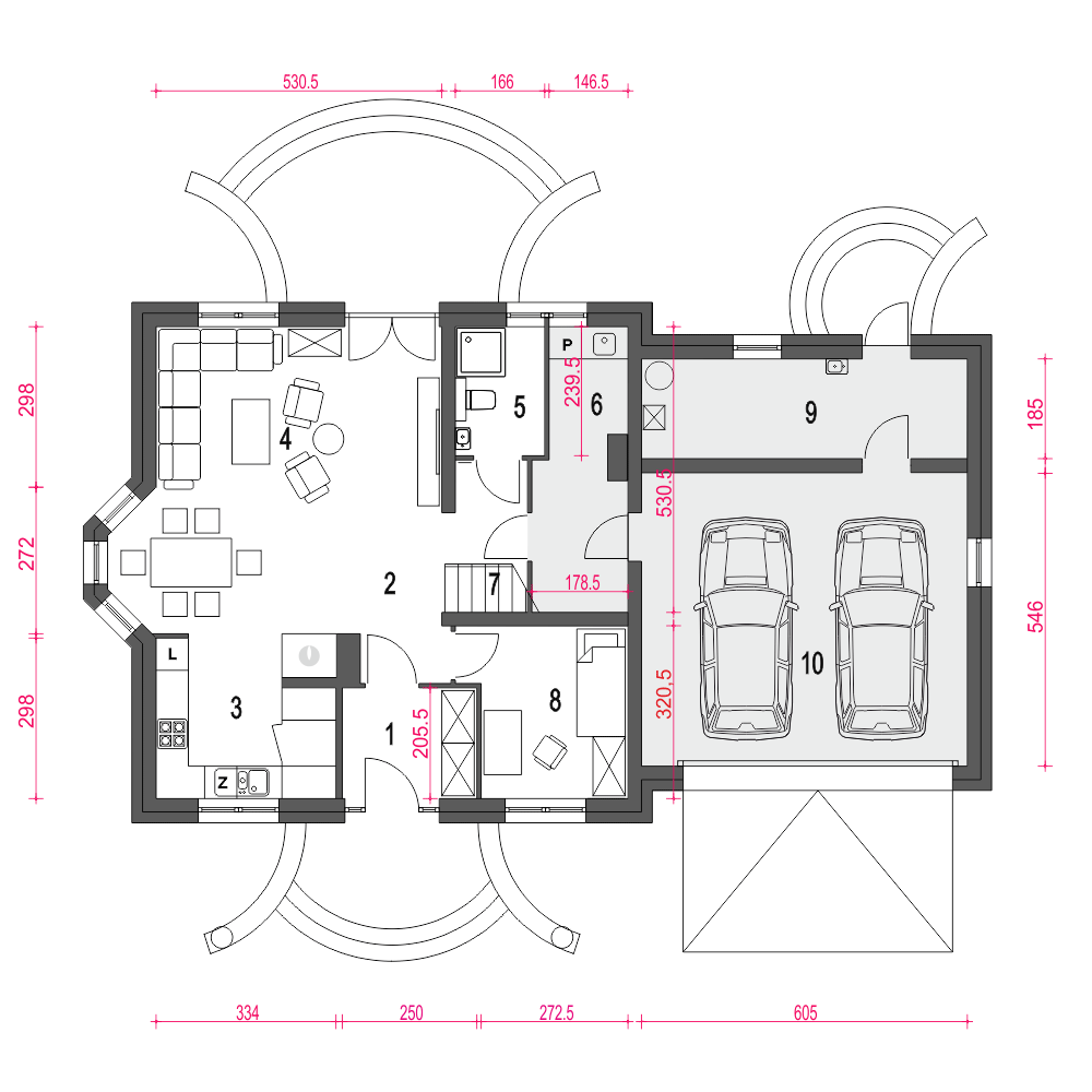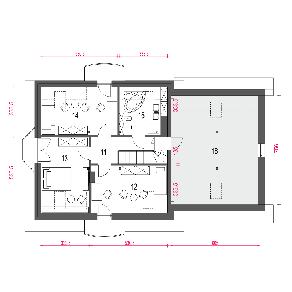 Dom Dla Ciebie 3 w wariancie A3 z garażem dwustanowiskowym to mniejsza wersja projektu Dom Dla Ciebie 1. To wariant z podniesiona ścianka kolankową w stosunku do wariantu A1. Ten uroczy dom zaprojektowany na rzucie kwadratu, ma ok 126 m2 i przeznaczony jest dla 4ro osobowej rodziny. Dom Dla Ciebie 3, zaprojektowany jest z zachowaniem podziału na dwie strefy: dzienną na parterze i nocną na poddaszu. Na parterze mamy zaprojektowany wiatrołap z wnękowymi szafami, następnie mamy wygodny hol z którego dostaniemy się do kuchni ze spiżarnią, do salonu z jadalnią i kominkiem. Na parterze mamy jeszcze do dyspozycji pokój usytuowany od frontu, który może być wykorzystywany np jako gabinet. Przy schodach mamy przewidzianą łazienkę z prysznicem oraz przejściową pralnię z której dostaniemy się do garażu i kotłowni. Poddasze obejmuje trzy ustawne, doświetlone pokoje - każdy z własnym balkonem. Przy schodach zaprojektowano ogólnie dostępną łazienkę z narożną wanną i prysznicem. Nad garażem mamy do dyspozycji strych do którego dostaniemy się ze spocznika schodów prowadzących na poddasze. Strych z łatwością można wykorzystać na etapie adaptacji jako dodatkowe pomieszczenie np.: pokój, garderobę lub pomieszczenie rekreacyjne. Poddasze zaprojektowane jest pod dwuspadowym dachem opartym na tradycyjnej więźbie i ściance kolankowej o wysokości ok 1,17m. Projekt Dom Dla Ciebie 3 w wariancie A3, to idealna propozycją domu dla osób poszukujących tradycyjnego domu o stylowej architekturze i przemyślanej funkcji. Projekt Dom Dla Ciebie 3 zaprojektowany jest w standardzie projektów energooszczędnych.