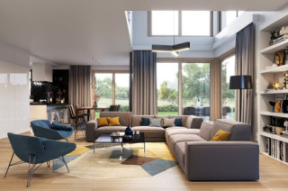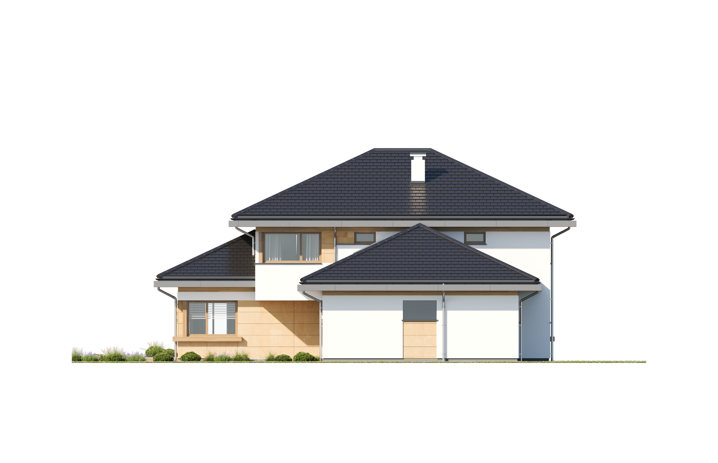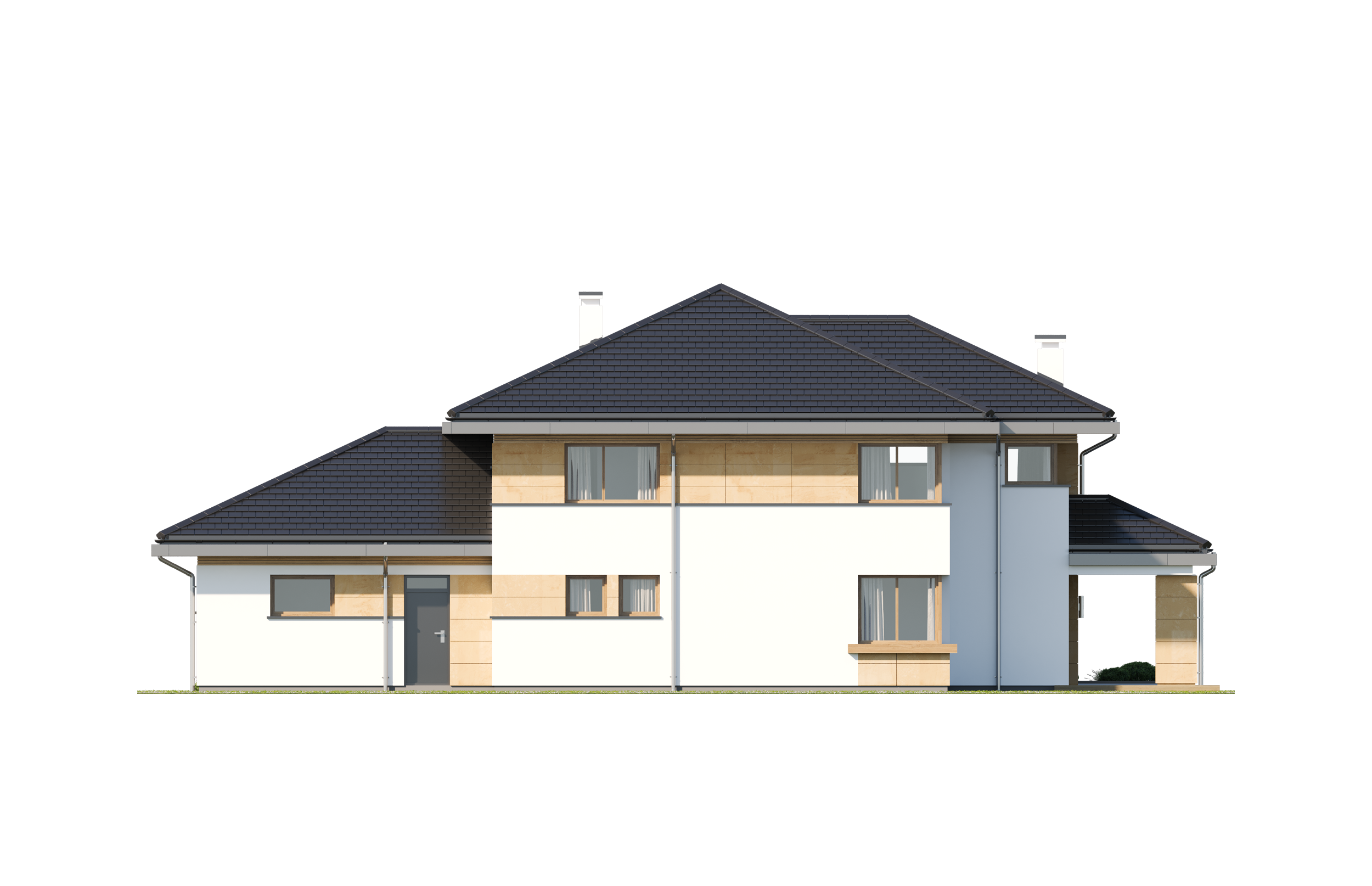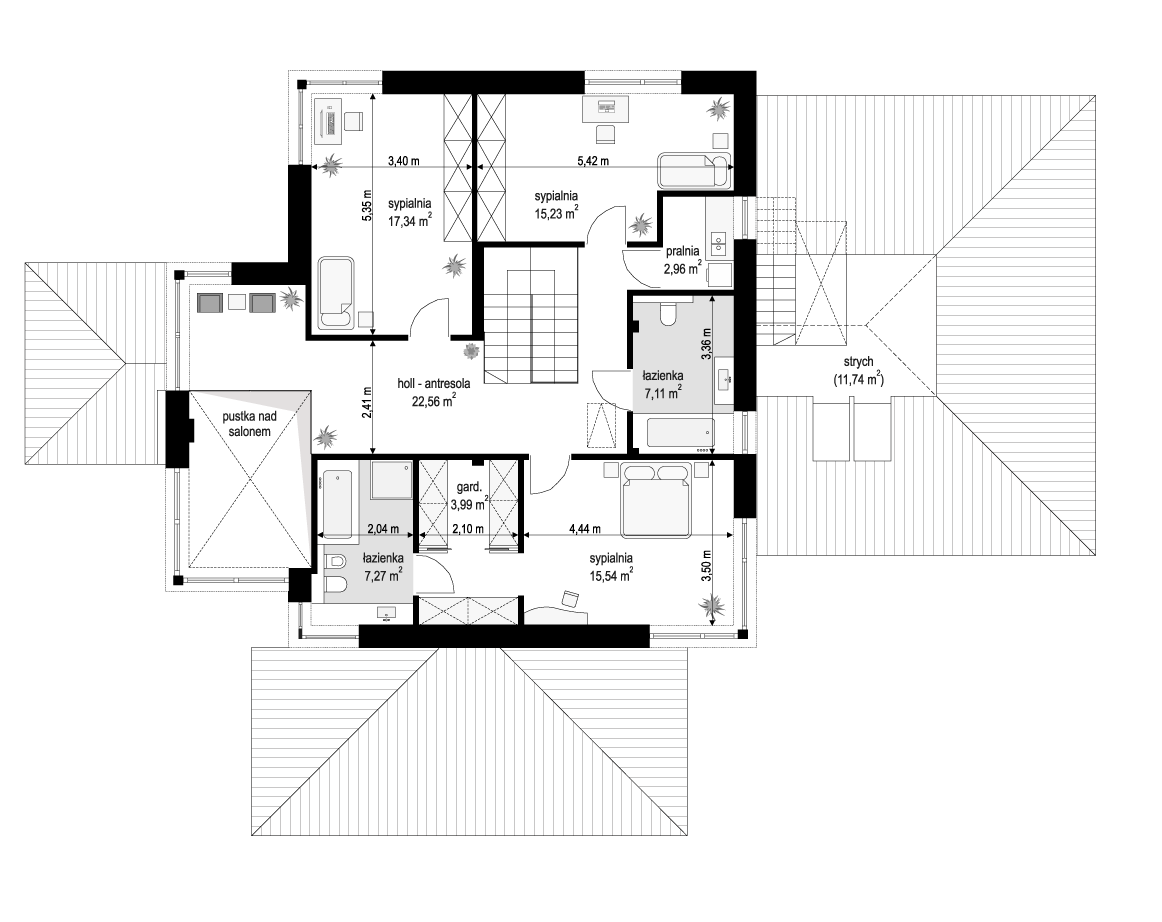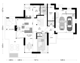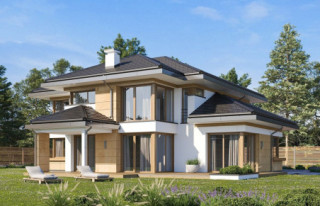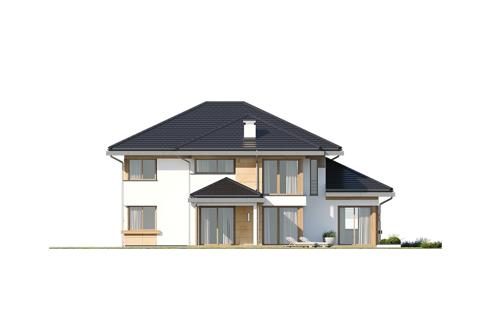 Wariant projektu głębszy, ze zmienionym układem pomieszczeń na parterze i piętrze, pompa ciepła. Projekt dostosowany do standardu NF40 w zakresie projektu architektoniczno-budowlanego.