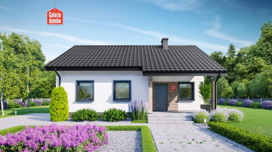 Dom przy Bukowej 10 jest gotowym projektem energooszczędnego domu parterowego. Wykonany w technologii tradycyjnej, murowanej i dostosowany do najnowszych warunków technicznych. Układ funkcjonalny przewiduje otwartą, słoneczną część dzienną, na którą składa się salon i kuchnia. Bukowa 10 posiada ponadto 3 sypialnie, pralnie połączoną z kotłownią i kompletnie wyposażoną łazienkę. Elewacja budynku została ozdobiona naturalnym drewnem i kamieniem i jest utrzymana w stonowanych kolorach. Taka kolorystyka oddaje niezwykle popularny i lubiany skandynawski styl we współczesnej architekturze. Projekt, dzięki przemyślanej konstrukcji, jest szybki i tani w budowie oraz ekonomiczny w użytkowaniu. Doskonały wariant dla 4-5 osobowej rodziny. Dokumentacja zawiera dodatkowe projekty instalacji solarnej i wentylacji mechanicznej z rekuperacją oraz schemat połączeń teletechnicznych.