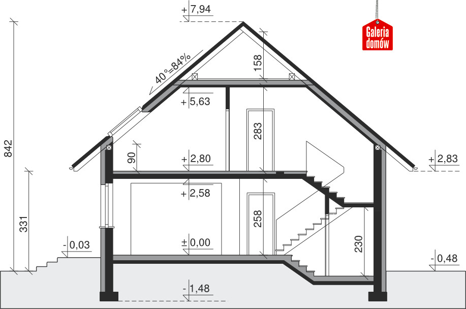 Nowoczesny dom z poddaszem, o prostej bryle przykrytej dwuspadowym dachem, architekturą nawiązujący do najlepszych trendów dzisiejszej sztuki projektowej. Szklane balkony, metaliczna stolarka aluminiowa, oryginalne oświetlenie i biała elewacja podkreślają oryginalny, współczesny charakter domu. Komfort użytkowania zapewnia funkcjonalny podział wnętrza na strefę dzienną i nocną. Na parterze znajduje się słoneczny salon, z którego przesuwnymi drzwiami można wyjść na taras, duża kuchnia, łazienka i dodatkowy pokój. Na poddaszu zaprojektowano trzy przytulne i jasne sypialnie oraz drugą łazienkę. Ekonomiczny i ergonomiczny dom będący ozdobą każdej działki.