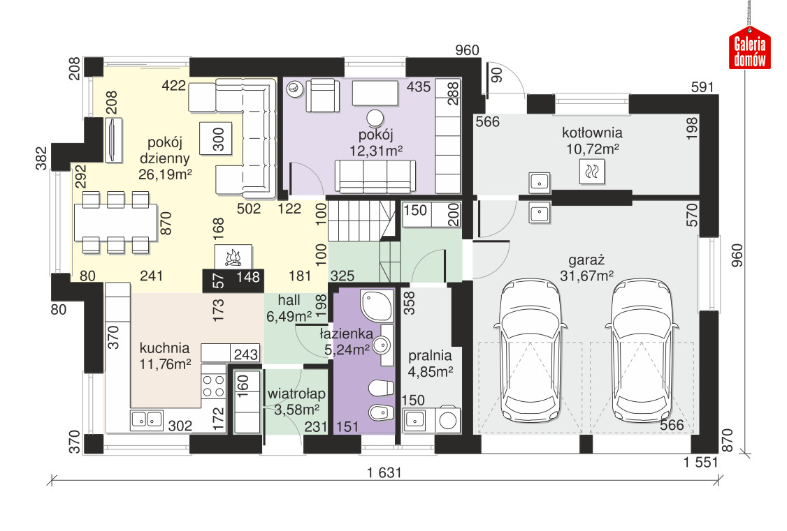 Dom przy Cyprysowej 15 K6 to gotowy projekt domu z użytkowym poddaszem, dwustanowiskowym garażem i dachem, którego kalenica główna ustawiona została prostopadle do drogi. Część dzienną tworzą duży, przestronny salon połączony z jadalnią, ulokowaną w przeszklonym wykuszu. Całość słonecznej przestrzeni uzupełnia otwarta kuchnia. Pozostałe składniki parteru to dodatkowy pokój, łazienka z oknem, funkcjonalna pralnia i spora kotłownia umieszczona za garażem. Na poddaszu zaprojektowano trzy sypialnie i komfortową łazienkę. Przestrzeń nad garażem (ponad 30 m²) przeznaczono na duży strych, który w dowolny sposób można wykorzystać. Każdy z wygodnych pokoi ma dostęp do balkonu, przez co poddasze jest wyjątkowo słoneczne. Budynek zaprojektowany został w technologii tradycyjnej, murowanej, z ogrzewaniem gazowym. Dodatkowo opcjonalnie można zastosować ujętą w projekcie wentylację mechaniczną z rekuperacją oraz instalację solarną. Prosta konstrukcja i ergonomiczne rozwiązania czynią ten projekt łatwym w realizacji, szybkim w budowie, a co ważne, ekonomicznym w użytkowaniu. Doskonała propozycja dla wszystkich, którzy przy niewielkiej powierzchni użytkowej budynku cenią sobie dodatkową przestrzeń, nowoczesną estetykę i solidny standard wykonania.