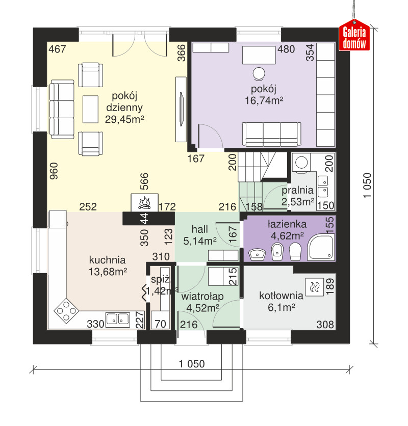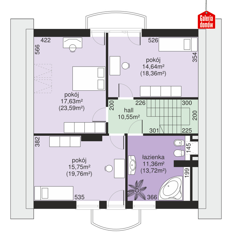 Jednoprzestrzenny parter, duże przeszklenia i ograniczona do minimum, funkcjonalna komunikacja. Dodatkowy pokój na parterze, któremu można nadać prawie dowolną funkcję. Przestronne trzy pokoje na poddaszu doświetlają duże okna balkonowe i mniejsze, umieszczone w połaci dachu. Ergonomiczny kształt domu - mimo jego sporego rozmiaru - ograniczy koszty budowy i użytkowania. Z zewnątrz prezentuje się nie tylko okazale, ale i solidnie. Uwagę zwracają kute poręcze balkonów, tradycyjny dobór kolorów (jasne ściany i ciemnobrązowy dach), drewniana, szlachetna stolarka okienna i eleganckie obramowanie okien.