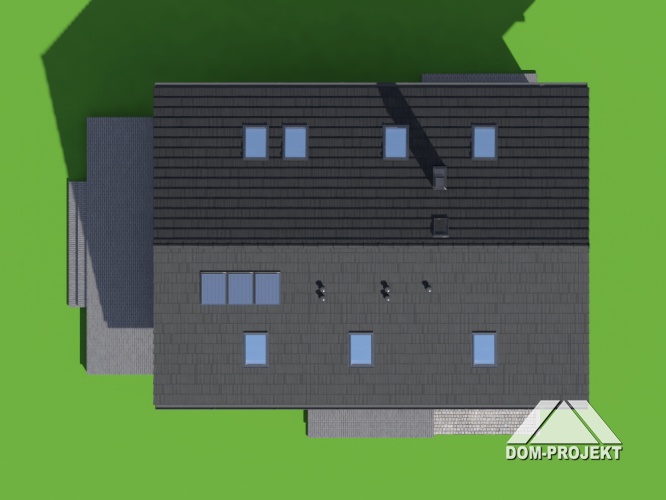 Dom dla ludzi ceniących wygodę i oszczędność. Prosty projekt (dwuspadowy dach, jedna kondygnacja) ograniczy koszty budowy i użytkowania budynku. Dobre proporcje i udane połączenie różnych materiałów elewacyjnych wprowadzają harmonię i spokój. Wnętrze domu, pomimo niewielkiej powierzchni, jest bardzo wygodne i funkcjonalne. Program użytkowy obejmuje duży pokój dzienny z kominkiem i wyjściem do ogrodu, otwartą kuchnię, trzy sypialnie i łazienkę. Dom posiada garaż dwustanowiskowy. Projekt dostępny również w wersji z dachem o kącie nachylenia 30°.