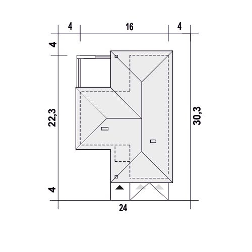 Parterowy, solidny dom blisko ziemi. Dla praktycznej rodziny, która znajdzie tu wszystko, co niezbędne do wygodnego życia. Projekt nie generuje wysokich kosztów na etapie budowy. Nie jest skomplikowany. Stylem nawiązuje do minimalistycznego budownictwa jednorodzinnego popularnego na północy Europy. Dobrze komponuje się z naturą. Jego zaletą jest prosta konstrukcja i użycie naturalnych materiałów (w tym przypadku okładziny kamiennej i drewnianej oblicówki na elewacji) oraz i zastosowanie dużych okien o regularnych kształtach. Posiada wygodny, dwustanowiskowy garaż.