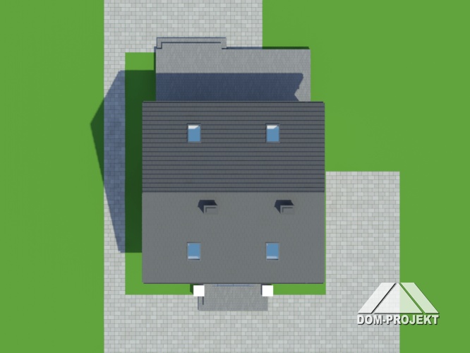 Nowoczesny dom parterowy z wbudowanym garażem dwustanowiskowym. Prosta bryła i dwuspadowy dach gwarantują minimalne koszty budowy. Funkcjonalny rozkład wnętrza pozwala na maksymalne wykorzystanie dostępnej przestrzeni. Dom przypadnie do gustu rodzinom ceniącym sobie wygodę i oszczędność.