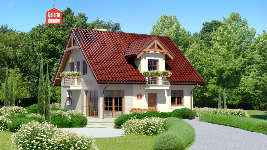 Rodzina projektów z kolekcji Dom przy Wiosennej zawiera także tradycyjne rozwiązania stylistyczne. Drewniane elementy wykończenia elewacji poprawiają odczucia związane ze statecznością i dobrym nastrojem. Dom przy Wiosennej 5 jest wariantem projektu nie zawierającym garażu co pozwoliło na redukcję kosztów budowy, ale też nie wpłynęło negatywnie na program mieszkalny. Nowoczesne wnętrze zawiera układ pomieszczeń dostosowany do lokalizacji domu na działkach z wejściem od strony: południowej, południowo-wschodniej i w odbiciu lustrzanym od południowo-zachodniej.