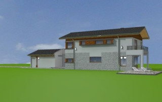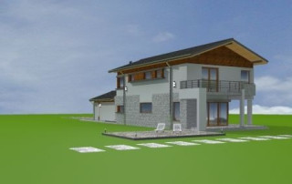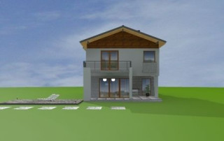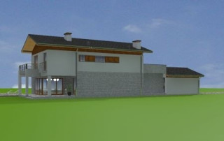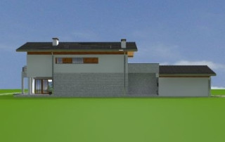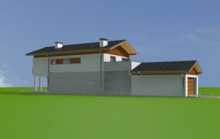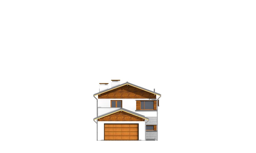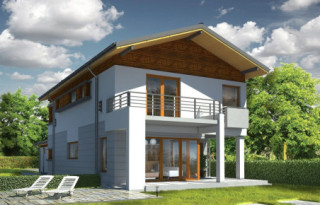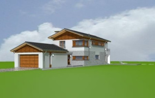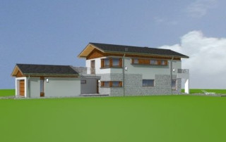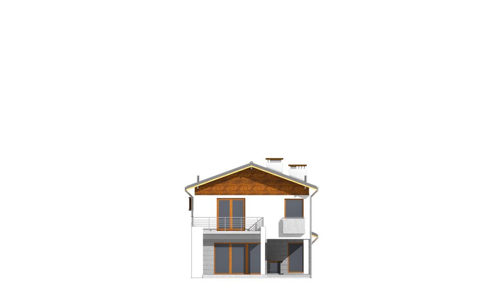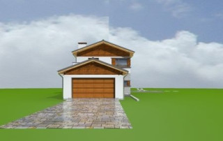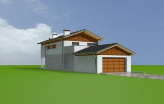 Projekt domu Lugano to willa jednorodzinna dla rodziny 4- 5-osobowej. Piętrowy budynek przykryty został dwuspadowym symetrycznym dachem z dachówki ceramicznej. Dom ma nowoczesny charakter, zaprojektowany został z przeznaczeniem dla wąskich działek, na których budynek musi mieć formę długiego wąskiego prostopadłościanu. Część garażowa parterowa została wyciągnięta przed główną bryłę budynku, urozmaicając w ten sposób część frontową. Od strony ogrodu bryłę domu ozdabia narożne okno salonu, podcień i taras piętra na bocznych słupach. Dwuspadowy łagodny dach z dużymi okapami dodaje całemu budynkowi dynamiki. Wnętrze projektu domu Lugano podzielono na jednoprzestrzenną część dzienną na parterze, z ciekawymi, jednobiegowymi schodami, stanowiącymi niewątpliwą ozdobę salonu, oraz część nocną piętra z czterema sypialniami i dużą rodzinną łazienką. Domek pomimo niewielkiej powierzchni jest zaprojektowany funkcjonalnie, a same pomieszczenia są słusznej wielkości. Na parterze obok salonu swoje miejsce znalazł dodatkowy pokój - gabinet lub sypialnia gościnna. Garaż połączono z resztą domu przez duże pomieszczenie techniczne. Z pokoju dziennego można podziwiać ogród przez duże przeszklone otwarcie, połączone z podcieniem z kominkiem zewnętrznym i tarasem. Projekt domu Lugano dostępny jest również w wersji odbicia lustrzanego.