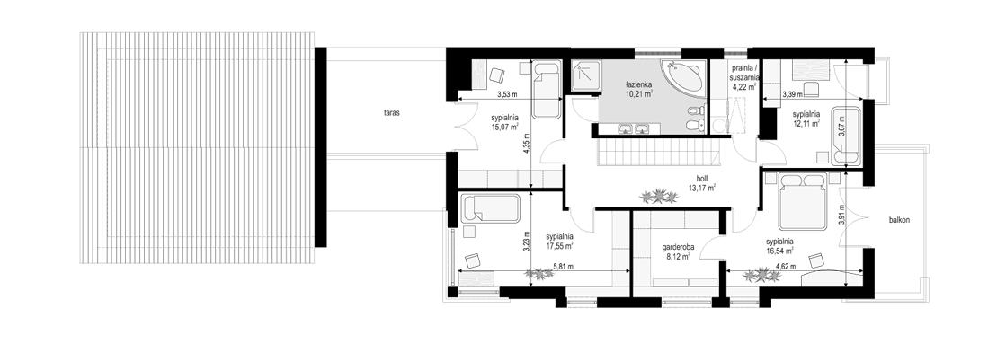 Podoba mi się całokształt, ale szczególnie w tym projekcie z Archido zasługujące na pochwałę jest rozplanowanie poddasza. Funkcjonalna strefa nocna jest doskonałym miejscem do odpoczynku, a jedna sypialnia z łazienką i jeszcze naprawdę dużą garderobą do dodatkowe miejsce gdzie można mieć chociaż odrobinę prywatnoości. pozdrawiam serdecznie.