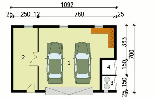 Projekt garażu dwustanowiskowego z pom. gospodarczym