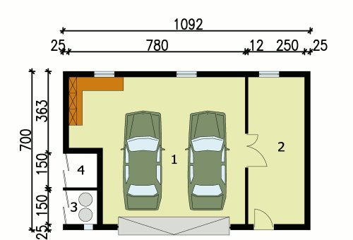 Projekt garażu dwustanowiskowego z pom. gospodarczym