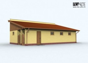 Projekt garażu trzystanowiskowego z pom. gospodarczym składem na odpady i drewno. Projekt składa się z czterech egzemplarzy a w tym części architektonicznej, konstrukcyjnej i instalacji wewnętrznej elektrycznej. W projekcie załączone są podstawowe zestawienie stali, drewna i stolarki okienno-drzwiowej. Do projektu dołączamy bezpłatną zgodę na wprowadzenie zmian, oświadczenie projektantów o wykonaniu projektu zgodnie z obowiązującymi normami i przepisami oraz kserokopie uprawnień projektantów wraz z aktualnym wpisem do izby.