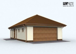 Projekt garażu trzystanowiskowego z pom. gospodarczym. Projekt składa się z czterech egzemplarzy a w tym części architektonicznej, konstrukcyjnej i instalacji wewnętrznej elektrycznej. W projekcie załączone są podstawowe zestawienie stali, drewna i stolarki okienno-drzwiowej. Do projektu dołączamy bezpłatną zgodę na wprowadzenie zmian, oświadczenie projektantów o wykonaniu projektu zgodnie z obowiązującymi normami i przepisami oraz kserokopie uprawnień projektantów wraz z aktualnym wpisem do izby.