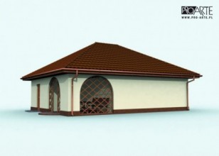 Garaż dwustanowiskowy z pom. gospodarczym,werandą, składem na odpady i drewno kominkowe. Projekt składa się z czterech egzemplarzy a w tym części architektonicznej, konstrukcyjnej i instalacji wewnętrznej elektrycznej. W projekcie załączone są podstawowe zestawienie stali, drewna i stolarki okienno-drzwiowej. Do projektu dołączamy bezpłatną zgodę na wprowadzenie zmian, oświadczenie projektantów o wykonaniu projektu zgodnie z obowiązującymi normami i przepisami oraz kserokopie uprawnień projektantów wraz z aktualnym wpisem do izby.