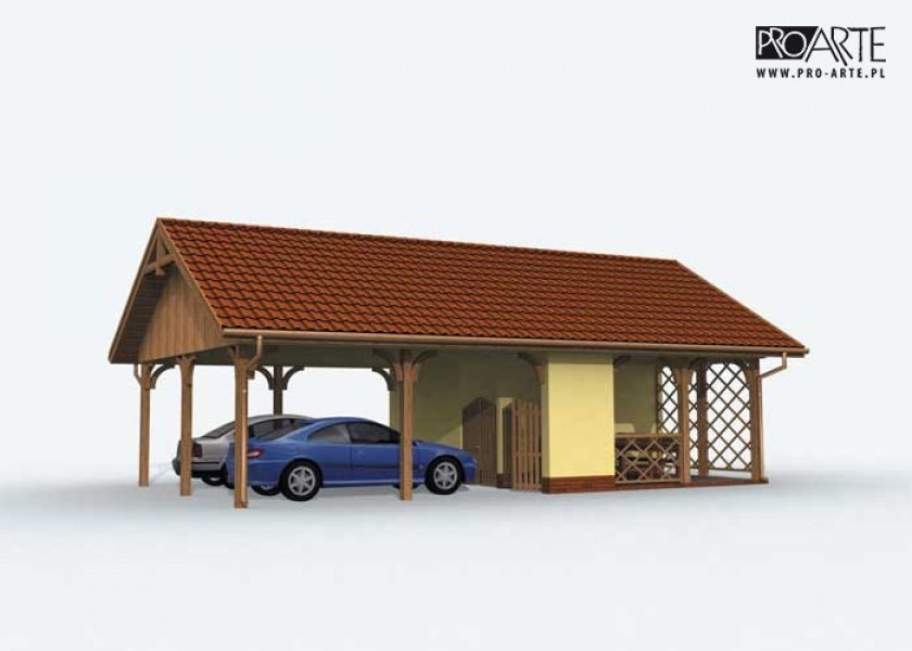 G154 wiata dwustanowiskowa z pomieszczeniem gospodarczym