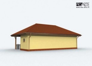 Garaż trzystanowiskowy z pom. gospodarczym i składem drewna kominkowego. Projekt garażu składa się z czterech egzemplarzy a w tym części architektonicznej, konstrukcyjnej i instalacji wewnętrznej elektrycznej. W projekcie załączone są podstawowe zestawienie stali, drewna i stolarki okienno-drzwiowej. Do projektu dołączamy bezpłatną zgodę na wprowadzenie zmian, oświadczenie projektantów o wykonaniu projektu zgodnie z obowiązującymi normami i przepisami oraz kserokopie uprawnień projektantów wraz z aktualnym wpisem do izby.