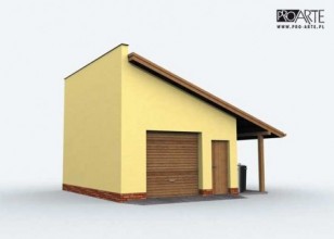 Garaż jednostanowiskowy z pomieszczeniem gospodarczym i składem na drewno.Brama garażowa o wymiarach 2,4x2,4m.  Projekt garażu składa się z czterech egzemplarzy a w tym części architektonicznej, konstrukcyjnej i instalacji wewnętrznej elektrycznej. W projekcie załączone są podstawowe zestawienie stali, drewna i stolarki okienno-drzwiowej. Do projektu dołączamy bezpłatną zgodę na wprowadzenie zmian, oświadczenie projektantów o wykonaniu projektu zgodnie z obowiązującymi normami i przepisami oraz kserokopie uprawnień projektantów wraz z aktualnym wpisem do izby.