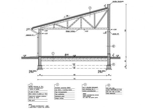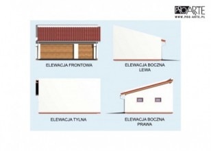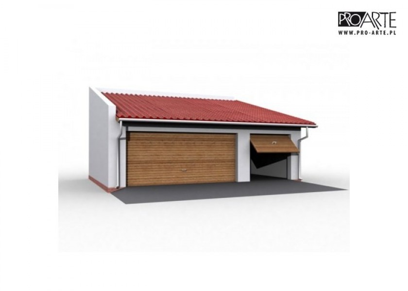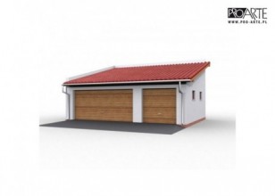Garaż trzystanowiskowy, wolnostojący, parterowy. Bramy garażowe o wymiarach 5100x2200 i 2400x2200.