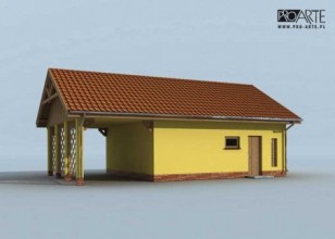 Garaż dwustanowiskowy z wiatą garażową, składem na drewno i odpady.Dwie bramy o wymiarach 2,4x2,4m. Projekt garażu składa się z czterech egzemplarzy a w tym części architektonicznej, konstrukcyjnej i instalacji wewnętrznej elektrycznej. W projekcie załączone są podstawowe zestawienie stali, drewna i stolarki okienno-drzwiowej. Do projektu dołączamy bezpłatną zgodę na wprowadzenie zmian, oświadczenie projektantów o wykonaniu projektu zgodnie z obowiązującymi normami i przepisami oraz kserokopie uprawnień projektantów wraz z aktualnym wpisem do izby.