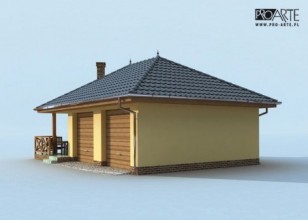 Garaż dwuostanowiskowy ze składem na drewno kominkowe, werandą oraz wędzarnikiem.
