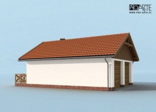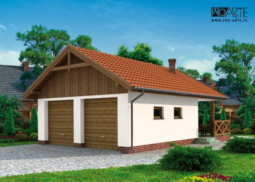 Garaż dwustanowiskowy z składem na drewno i werandą w technologii szkieletowej, wolnostojący, parterowy. Dwie bramy garażowe o wymiarach 2400x2400. Zobacz garaż w wersjii murowanej.Projekt garażu składa się z czterech egzemplarzy a w tym części architektonicznej, konstrukcyjnej i instalacji wewnętrznej elektrycznej. W projekcie załączone są podstawowe zestawienie stali, drewna i stolarki okienno-drzwiowej. Do projektu dołączamy bezpłatną zgodę na wprowadzenie zmian, oświadczenie projektantów o wykonaniu projektu zgodnie z obowiązującymi normami i przepisami oraz kserokopie uprawnień projektantów wraz z aktualnym wpisem do izby.