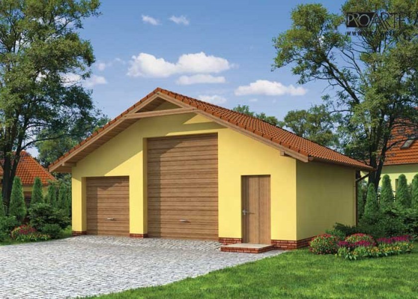 Projekt garażu dwustanowiskowego. Wymiary bram: 3,5 x 3, 2,4 x 2 m