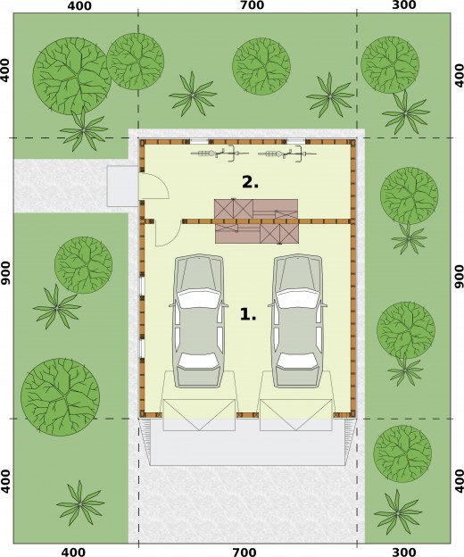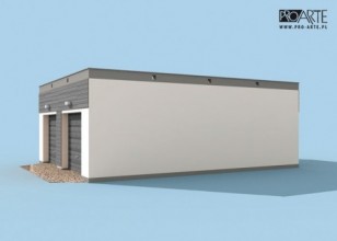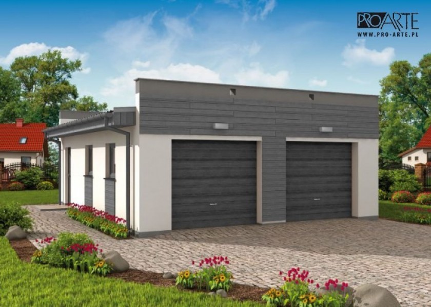 Garaż dwustanowiskowy z pomieszczeniem gospodarczym w technologii szkieletowej, wolnostojący, parterowy. Budynek posiada dwie bramy garażową o wymiarach 2,4 x 2,4m.Zobacz garaż w wersjii murowanej.Projekt garażu składa się z czterech egzemplarzy a w tym części architektonicznej, konstrukcyjnej i instalacji wewnętrznej elektrycznej. W projekcie załączone są podstawowe zestawienie stali, drewna i stolarki okienno-drzwiowej. Do projektu dołączamy bezpłatną zgodę na wprowadzenie zmian, oświadczenie projektantów o wykonaniu projektu zgodnie z obowiązującymi normami i przepisami oraz kserokopie uprawnień projektantów wraz z aktualnym wpisem do izby.