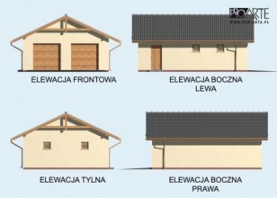 Garaż G1A dwustanowiskowy z pom. gospodarczym. Projekt garażu składa się z czterech egzemplarzy a w tym części architektonicznej, konstrukcyjnej i instalacji wewnętrznej elektrycznej. W projekcie załączone są podstawowe zestawienie stali, drewna i stolarki okienno-drzwiowej. Do projektu dołączamy bezpłatną zgodę na wprowadzenie zmian, oświadczenie projektantów o wykonaniu projektu zgodnie z obowiązującymi normami i przepisami oraz kserokopie uprawnień projektantów wraz z aktualnym wpisem do izby.