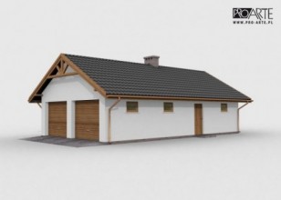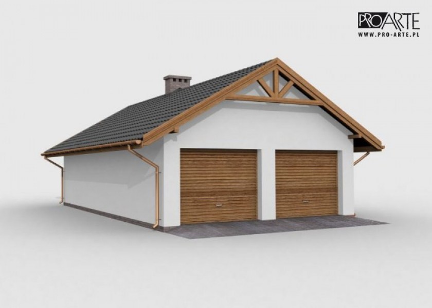 Garaż dwustanowiskowy z pomieszczeniem gospodarczym  w technologii szkieletowej, wolnostojący, parterowy. Budynek posiada dwie bramy garażową o wymiarach 2,4 x 2,4m.Zobacz garaż w wersjii murowanej.Projekt garażu składa się z czterech egzemplarzy a w tym części architektonicznej, konstrukcyjnej i instalacji wewnętrznej elektrycznej. W projekcie załączone są podstawowe zestawienie stali, drewna i stolarki okienno-drzwiowej. Do projektu dołączamy bezpłatną zgodę na wprowadzenie zmian, oświadczenie projektantów o wykonaniu projektu zgodnie z obowiązującymi normami i przepisami oraz kserokopie uprawnień projektantów wraz z aktualnym wpisem do izby.