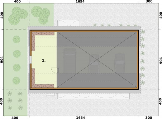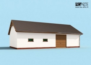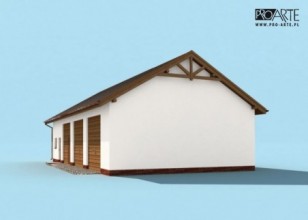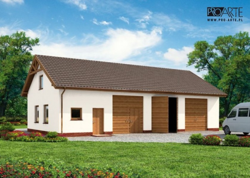 Garaż trzystanowiskowy z pom. gospodarczym, magazynem, łazienką i antresolą w technologii szkieletowej, wolnostojący. Budynek posiada 3 bramy garażowe o wymiarach 3000x3100.Zobacz garaż w wersjii murowanej.Projekt garażu składa się z czterech egzemplarzy a w tym części architektonicznej, konstrukcyjnej i instalacji wewnętrznej elektrycznej i sanitarnej. W projekcie załączone są podstawowe zestawienie stali, drewna i stolarki okienno-drzwiowej. Do projektu dołączamy bezpłatną zgodę na wprowadzenie zmian, oświadczenie projektantów o wykonaniu projektu zgodnie z obowiązującymi normami i przepisami oraz kserokopie uprawnień projektantów wraz z aktualnym wpisem do izby.