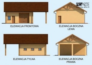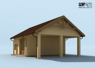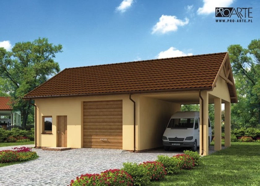 Garaż jednostanowiskowy z jednostanowiskową wiatą oraz pomieszczeniami gospodarczymi.Brama garażowa o wymiarach 3,0x3,0m. Projekt garażu składa się z czterech egzemplarzy a w tym części architektonicznej, konstrukcyjnej i instalacji wewnętrznej elektrycznej. W projekcie załączone są podstawowe zestawienie stali, drewna i stolarki okienno-drzwiowej. Do projektu dołączamy bezpłatną zgodę na wprowadzenie zmian, oświadczenie projektantów o wykonaniu projektu zgodnie z obowiązującymi normami i przepisami oraz kserokopie uprawnień projektantów wraz z aktualnym wpisem do izby.