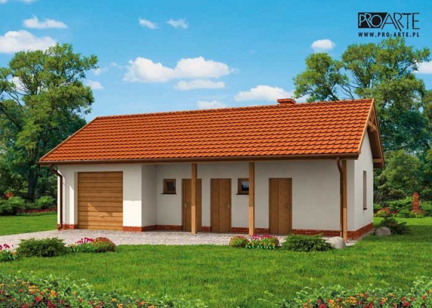Garaż jednostanowiskowy z trzema pomieszczeniami gospodarczymi.Brama garażowa o wymiarach 2,4x2,4m. Projekt garażu składa się z czterech egzemplarzy a w tym części architektonicznej, konstrukcyjnej i instalacji wewnętrznej elektrycznej. W projekcie załączone są podstawowe zestawienie stali, drewna i stolarki okienno-drzwiowej. Do projektu dołączamy bezpłatną zgodę na wprowadzenie zmian, oświadczenie projektantów o wykonaniu projektu zgodnie z obowiązującymi normami i przepisami oraz kserokopie uprawnień projektantów wraz z aktualnym wpisem do izby.