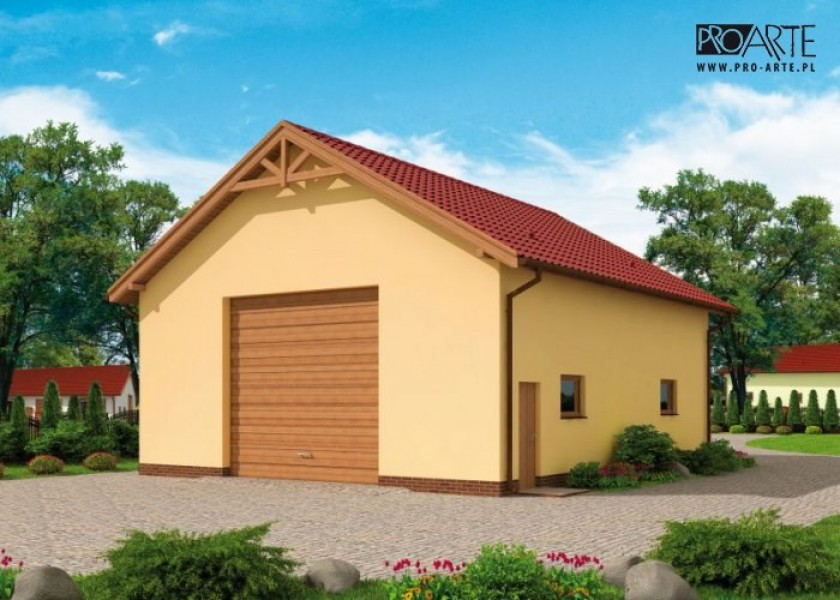 Garaż wielostanowiskowy w technologii szkieletowej, wolnostojący, parterowy. Projekt posiada dwie bramy garażowe o wymiarach 4400x4100.Może pełnić funkcję gospodarczą i magazynową.UWAGA: wizualizacja jest tylko przykładowym zdjęciem budynku, projekt posiada po 4 okna z każdej strony (a nie tylko 2 okna jak to widać na wizualizacji).Projekt jest dostępny w 3 wersjach.Zobacz garaż w wersjii murowanej.Projekt garażu składa się z czterech egzemplarzy a w tym części architektonicznej, konstrukcyjnej i instalacji wewnętrznej elektrycznej. W projekcie załączone są podstawowe zestawienie stali, drewna i stolarki okienno-drzwiowej. Do projektu dołączamy bezpłatną zgodę na wprowadzenie zmian, oświadczenie projektantów o wykonaniu projektu zgodnie z obowiązującymi normami i przepisami oraz kserokopie uprawnień projektantów wraz z aktualnym wpisem do izby.