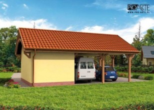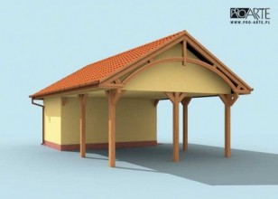 Garaż jednostanowiskowy z wiatą dwustanowiskową.Brama garażowa o wymiarach 2,4x2,4m. Projekt garażu składa się z czterech egzemplarzy a w tym części architektonicznej, konstrukcyjnej i instalacji wewnętrznej elektrycznej. W projekcie załączone są podstawowe zestawienie stali, drewna i stolarki okienno-drzwiowej. Do projektu dołączamy bezpłatną zgodę na wprowadzenie zmian, oświadczenie projektantów o wykonaniu projektu zgodnie z obowiązującymi normami i przepisami oraz kserokopie uprawnień projektantów wraz z aktualnym wpisem do izby.